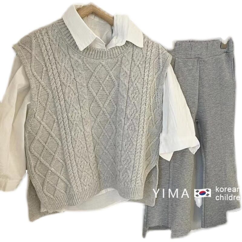 色:グレーニットベスト,白のシャツ,グレーパンツ