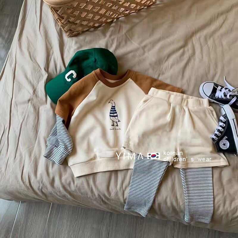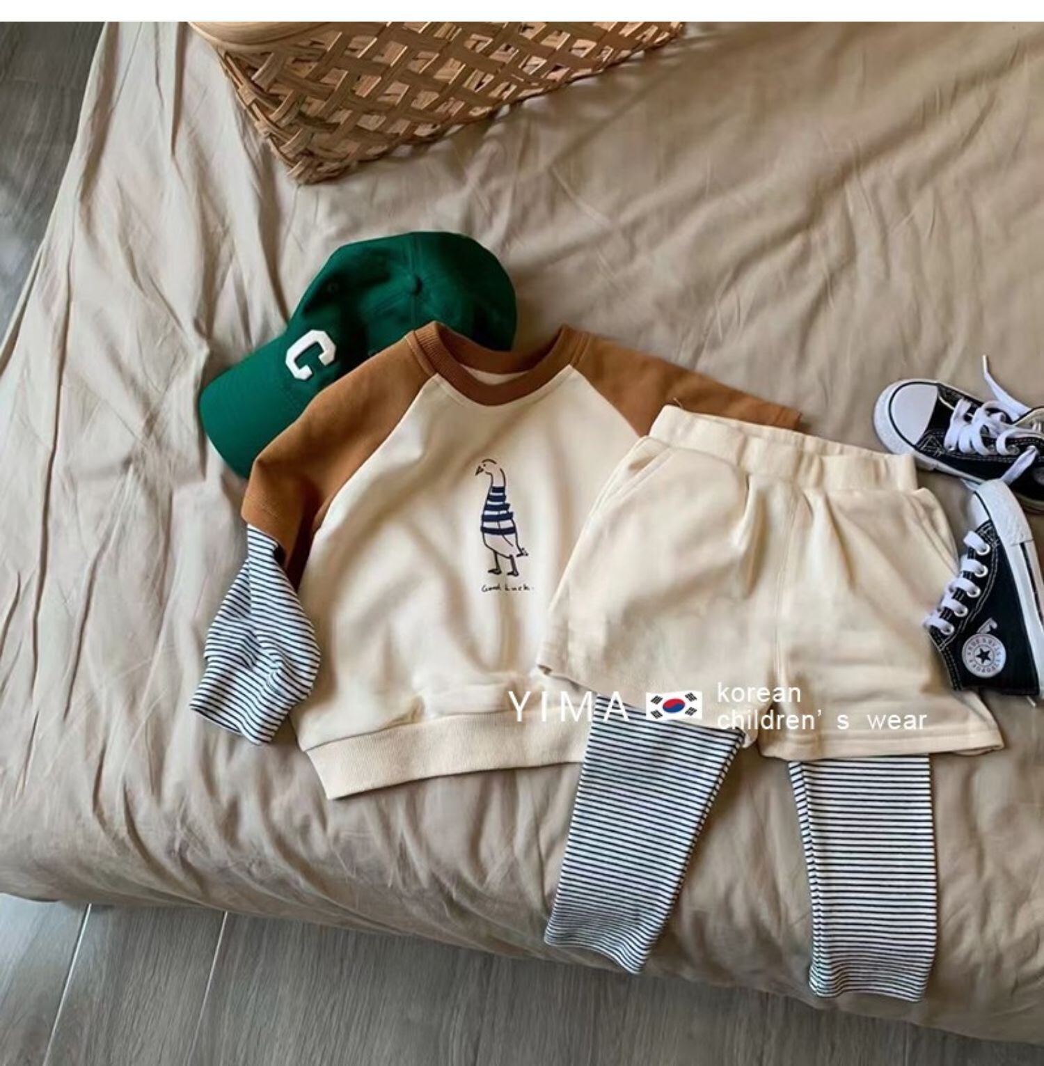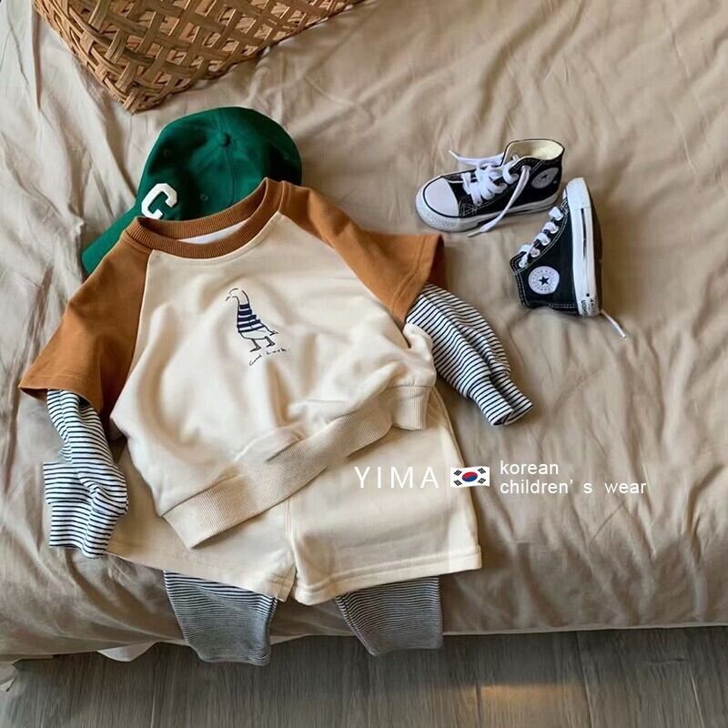 色:アプリコットブラウンフェイクツーピーススプライシングセット