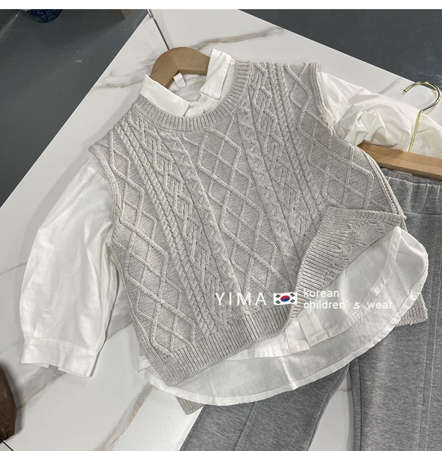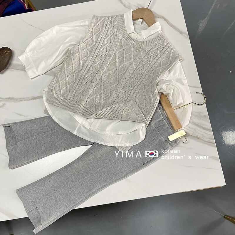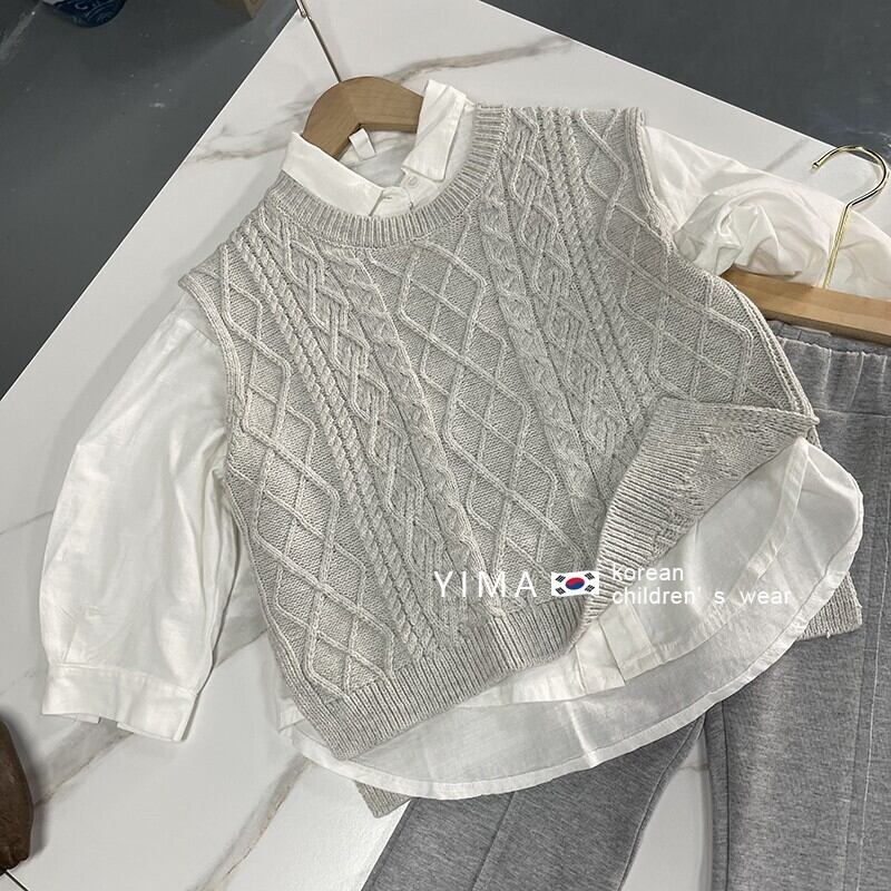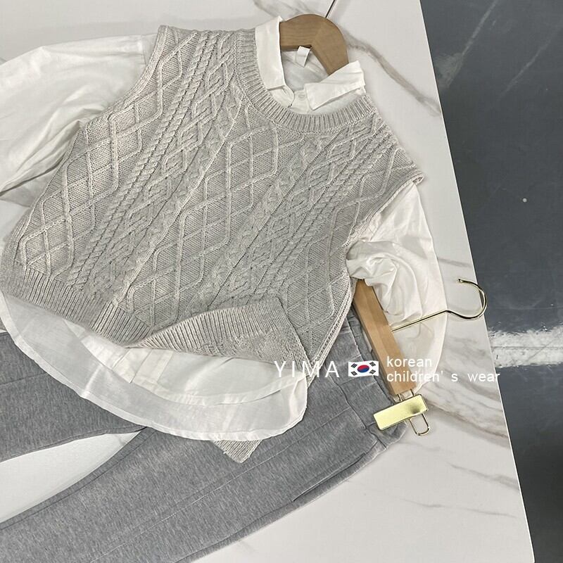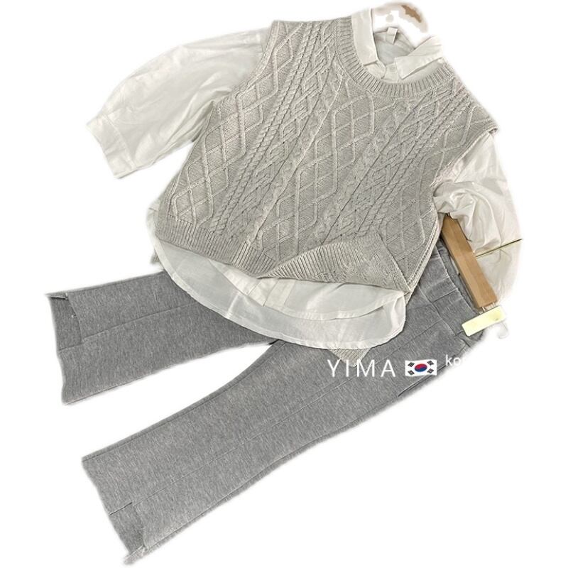 色:グレーニットベスト,白のシャツ,グレーのスラックス