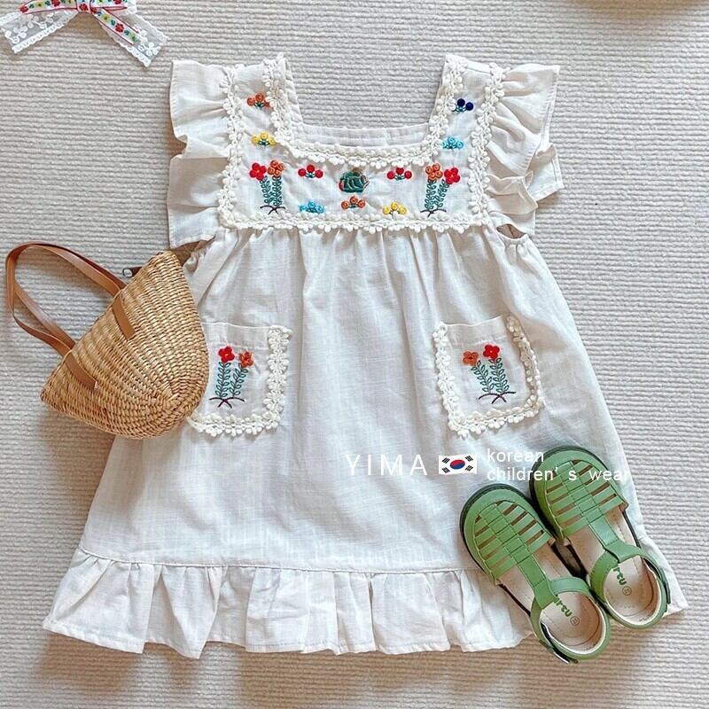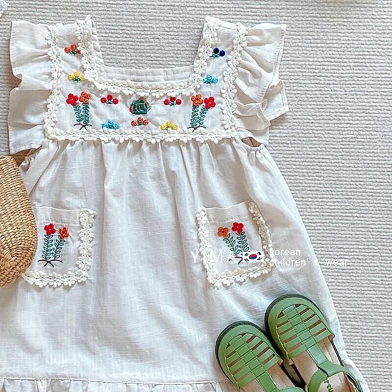 スプリングスカート サマーノースリーブ レッド 刺繍 春物 夏物 スクウェア 3/14 春夏 SS mi0927638103442 | Sagittarius By Constellation -KIDS&BABY-