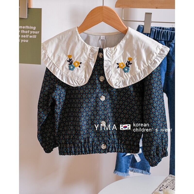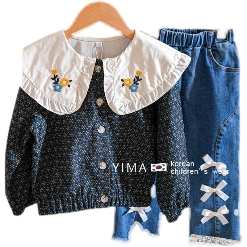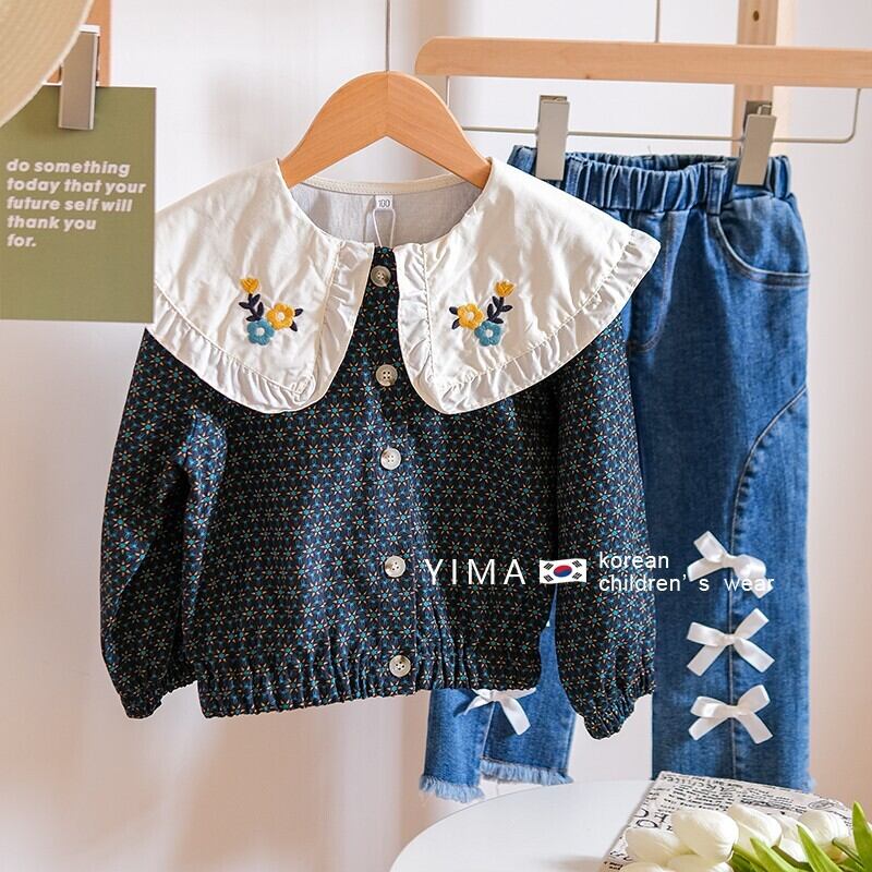 色:ブルーフローラルジャケット,ブルージーンズ