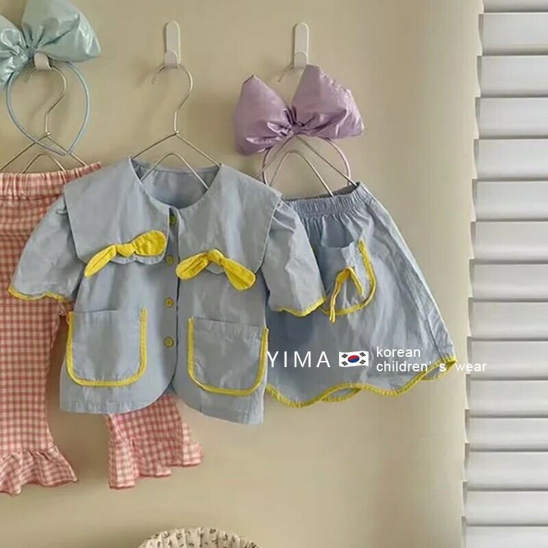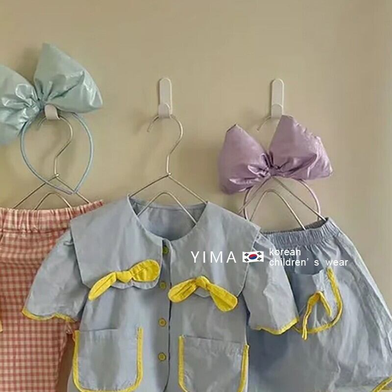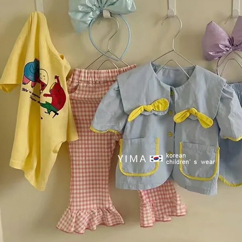 色:青いスーツ,黄色のtシャツ,ピンクのチェック柄パンツ
