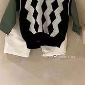 色:黒とグレーのニットベスト,アーミーグリーンシャツ