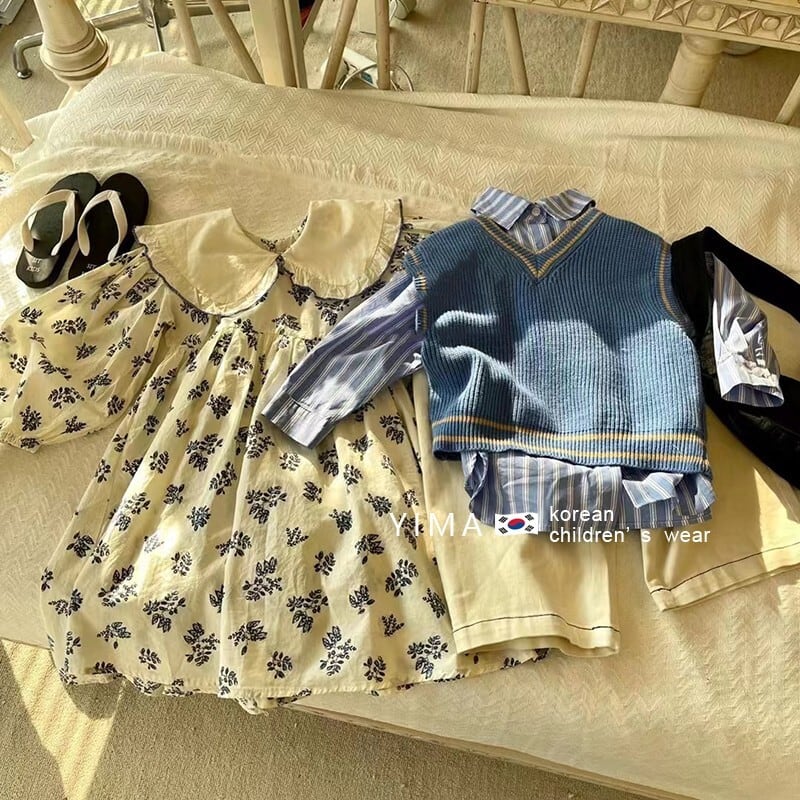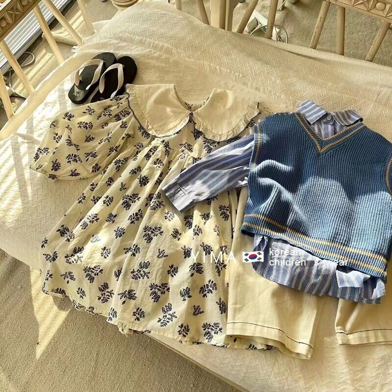 色:ドールカラーフローラルスカート,ストライプシャツ,ヴィンテージグリーンベスト