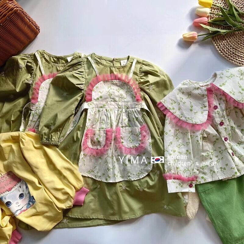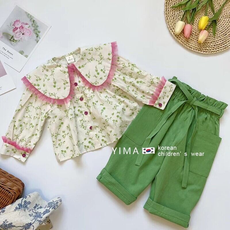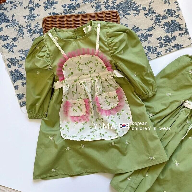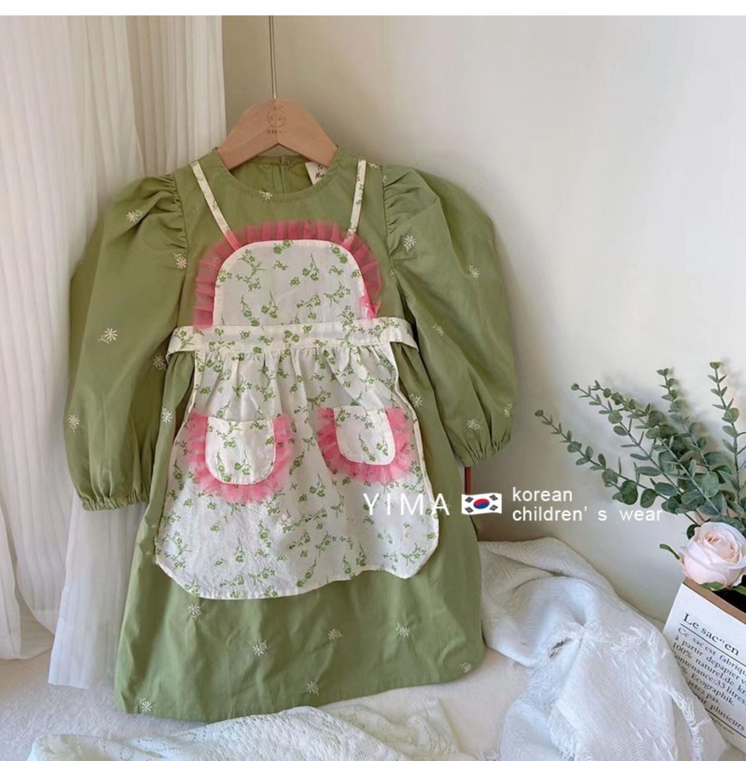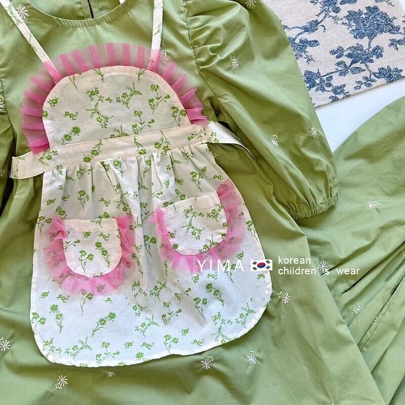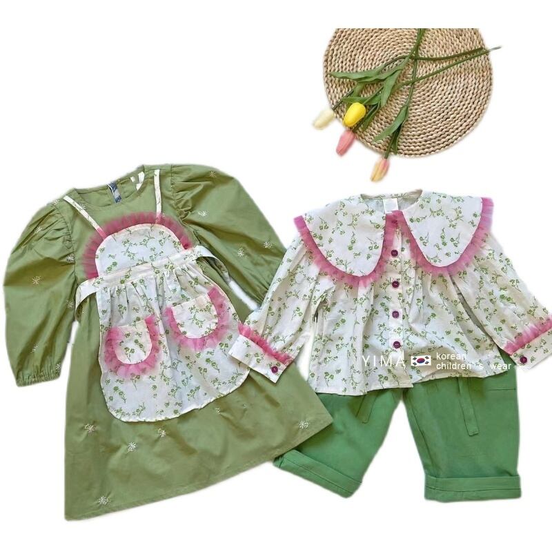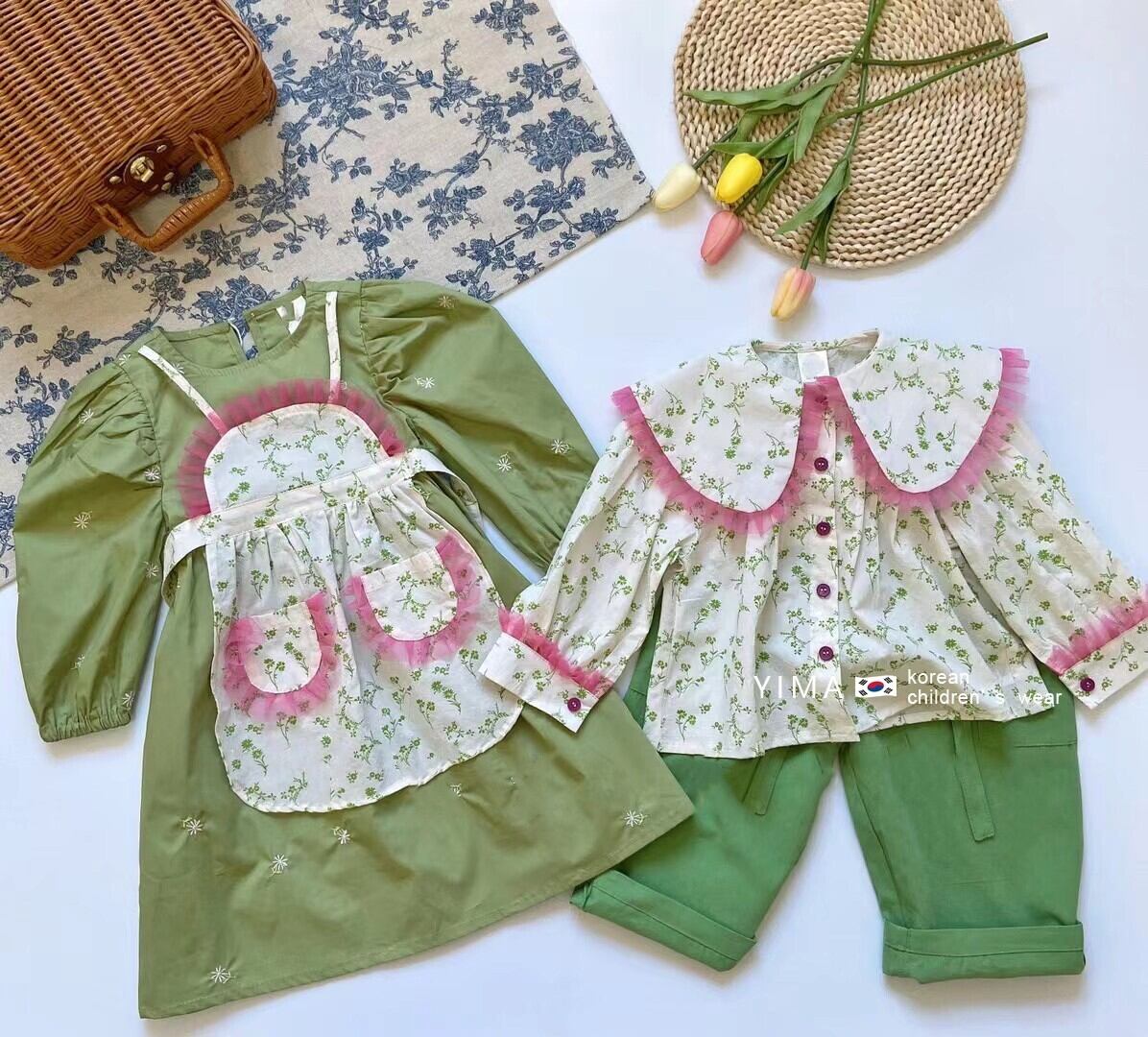 色:緑のドレス,アプリコットボトムグリーンフローラルシャツ,グリーンバッドパンツ