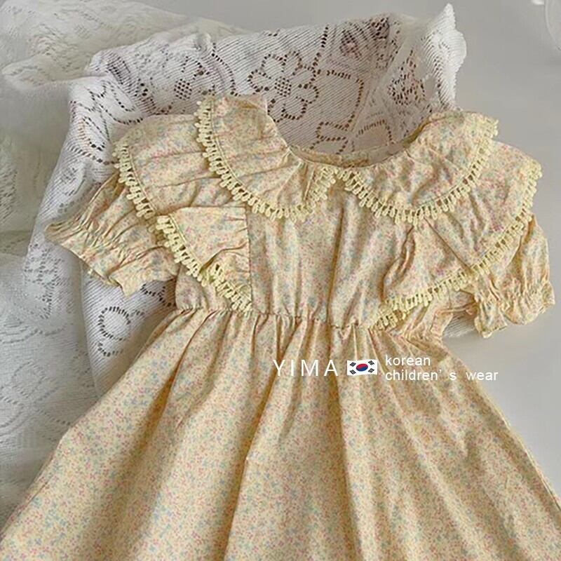 色:淡い黄色の花柄のドレス