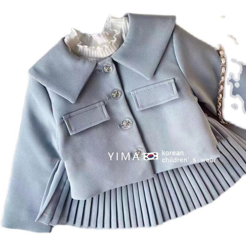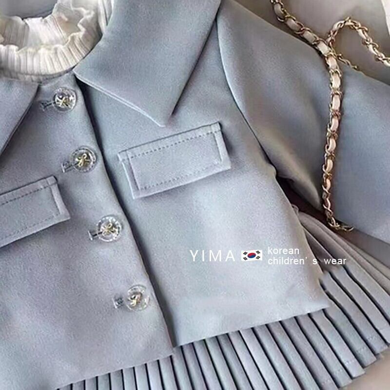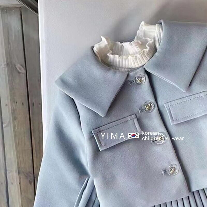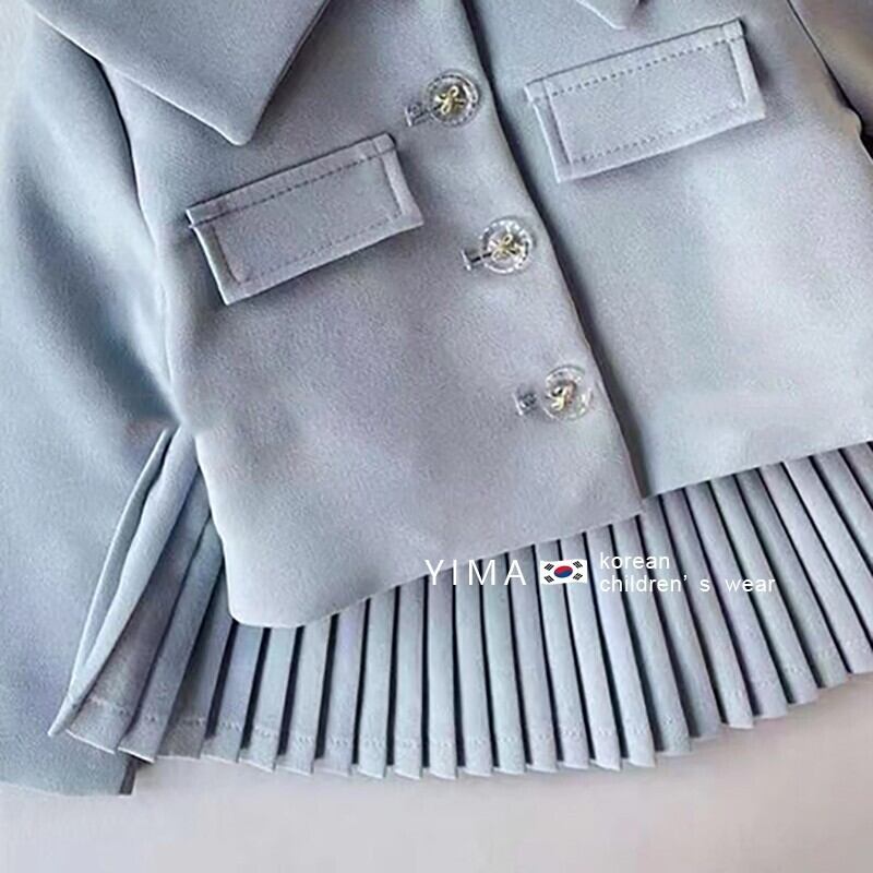 色:ミントグリーンジャケット,ミントグリーンプリーツスカート,ベージュのボトミングシャツ