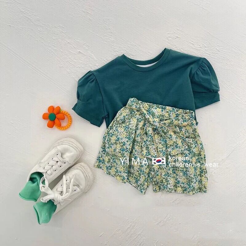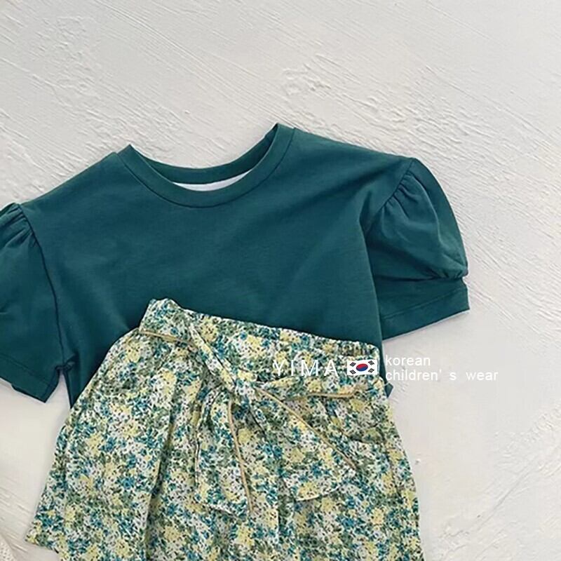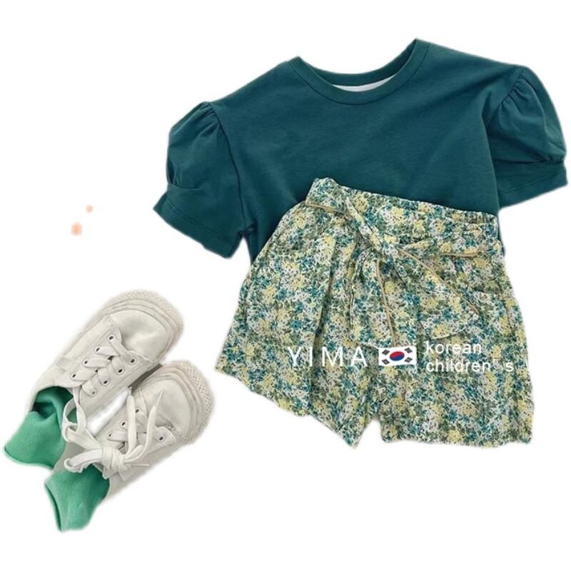 色:緑の半袖,フローラルショーツ
