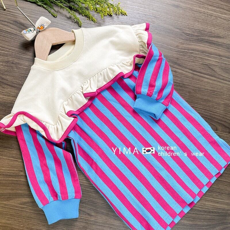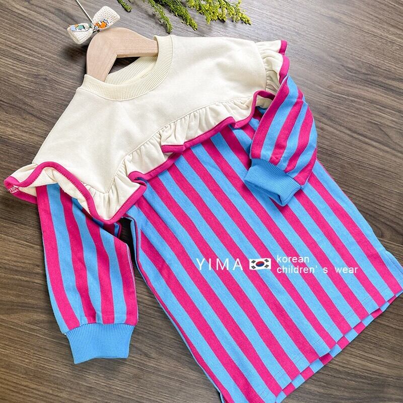 ストライプドレス スプリングラウンドネックプルオーバー カジュアルスカート 春物 Oネック 3/14 春夏 SS mi0998627024967 | Sagittarius By Constellation -KIDS&BABY-
