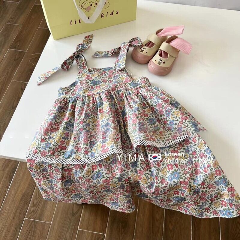 色:ピンクの花柄ドレス