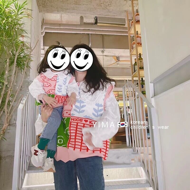 色:ベビーベスト,マザーズスタイルのベスト,赤ちゃんの白いシャツ,白いシャツのお母さん