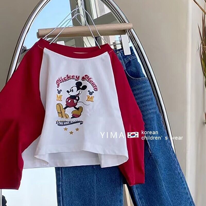 色:カラーブロック漫画Tシャツ,ブルーデニムストレートレッグパンツ