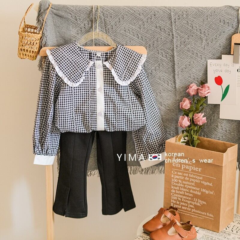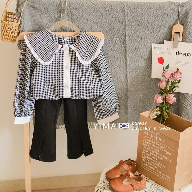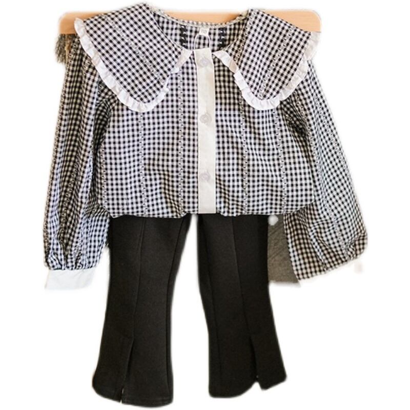 色:格子縞のシャツ,黒いズボン,グレーパンツ