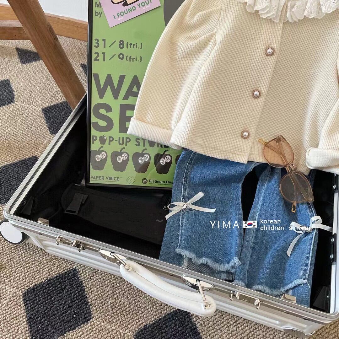 色:ベージュコート,ブルージーンズ