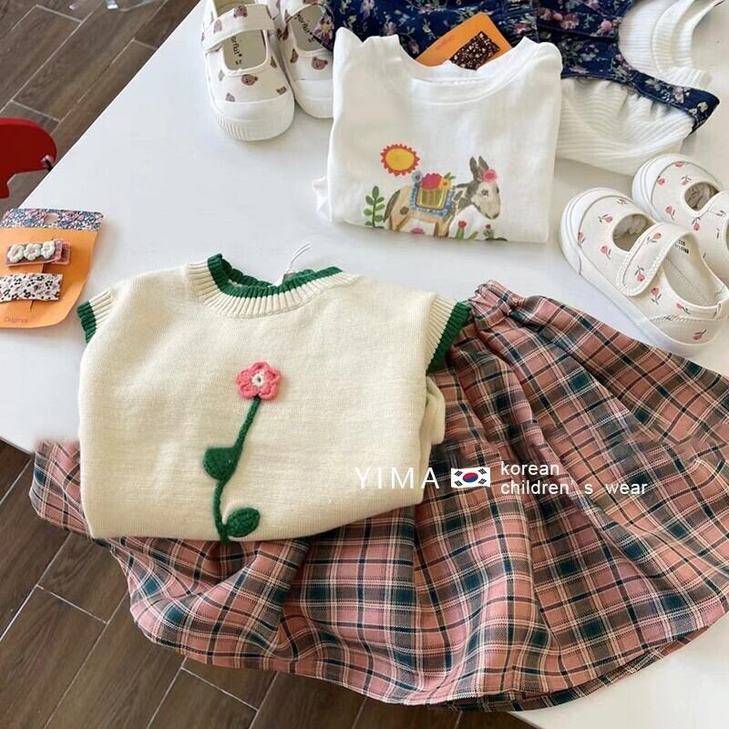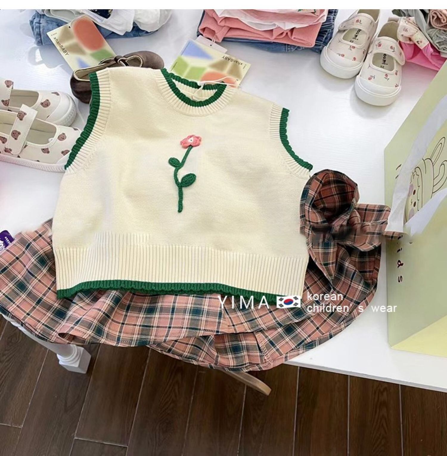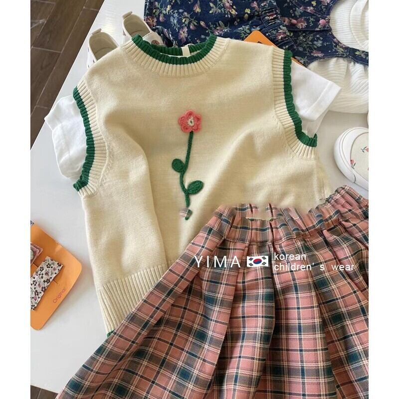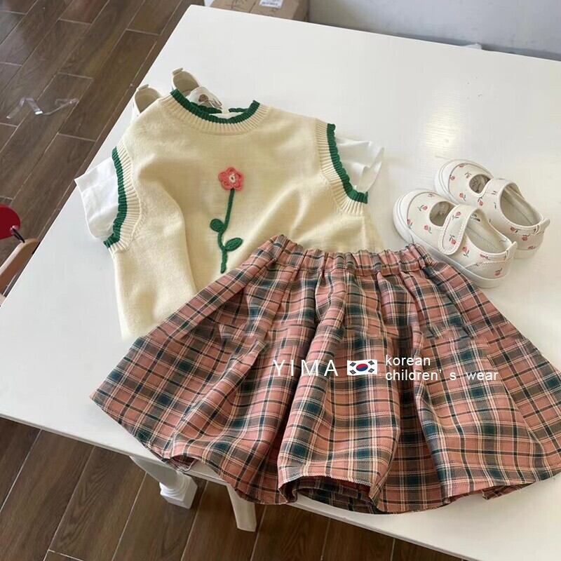 色:アプリコットベスト,チェック柄スカート