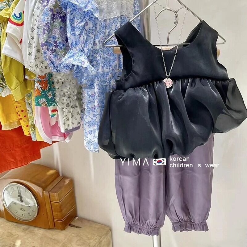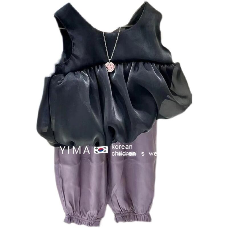 色:黒のベスト,パープルパンツ