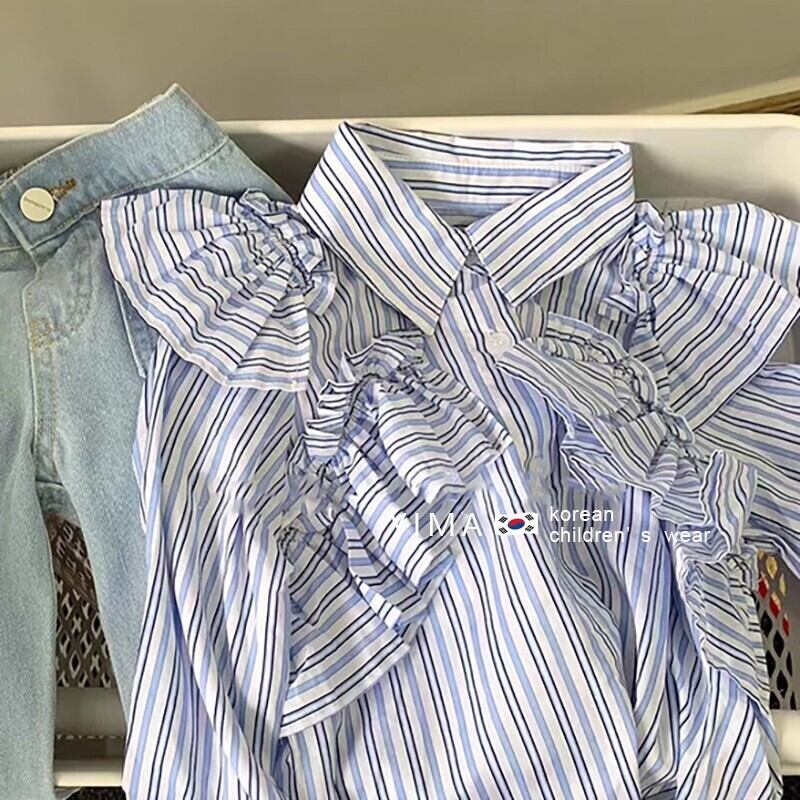 スプリングストライプシャツ スタイルラッフルトップス ロング 春物 3/14 春夏 SS mi0977316918216 | Sagittarius By Constellation -KIDS&BABY-