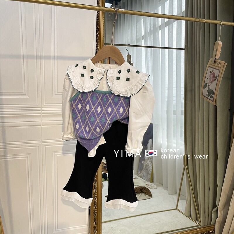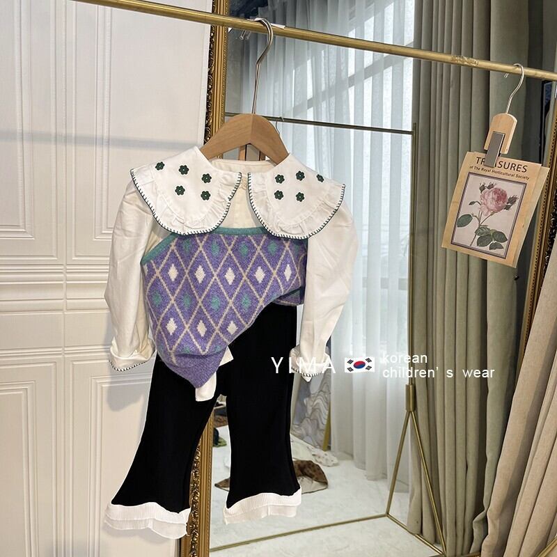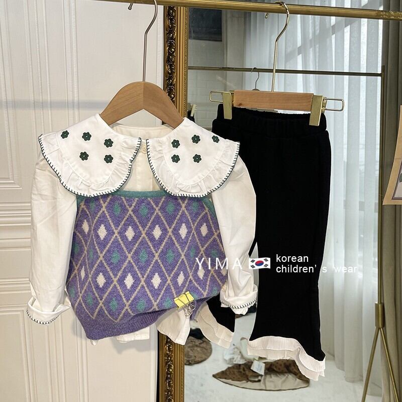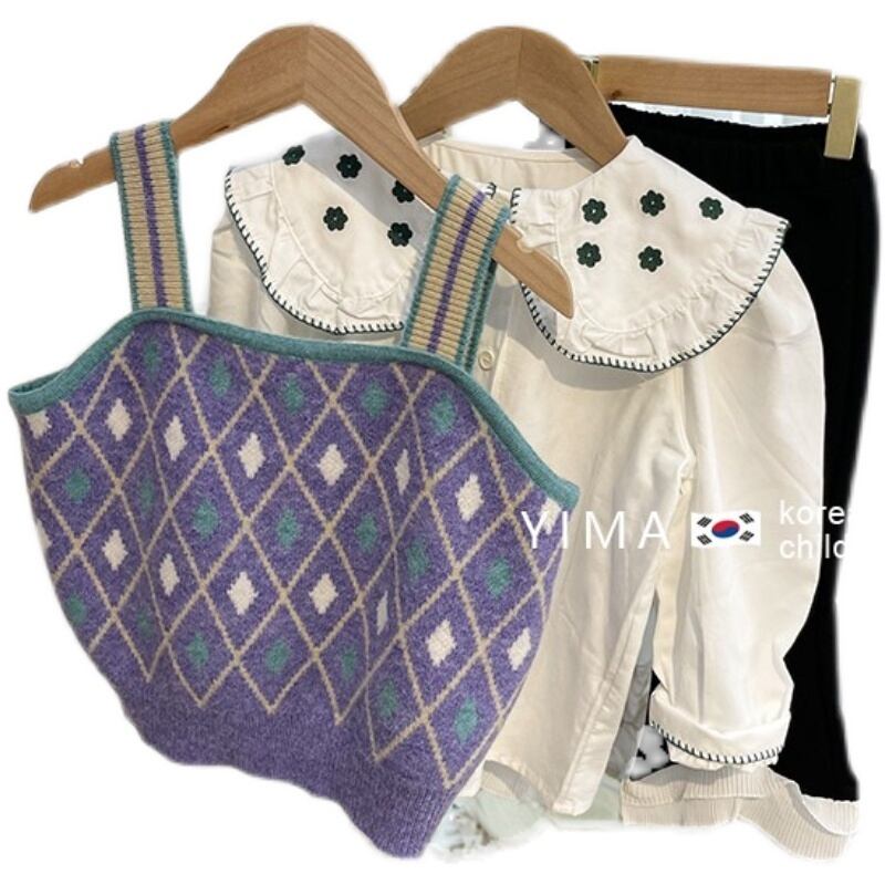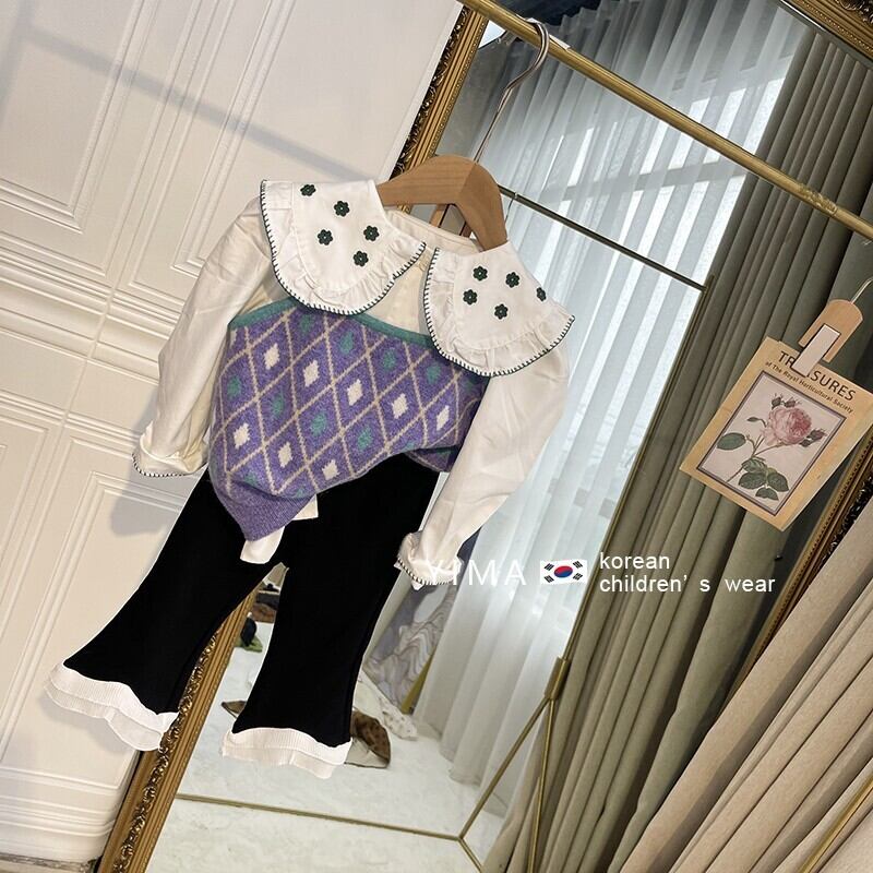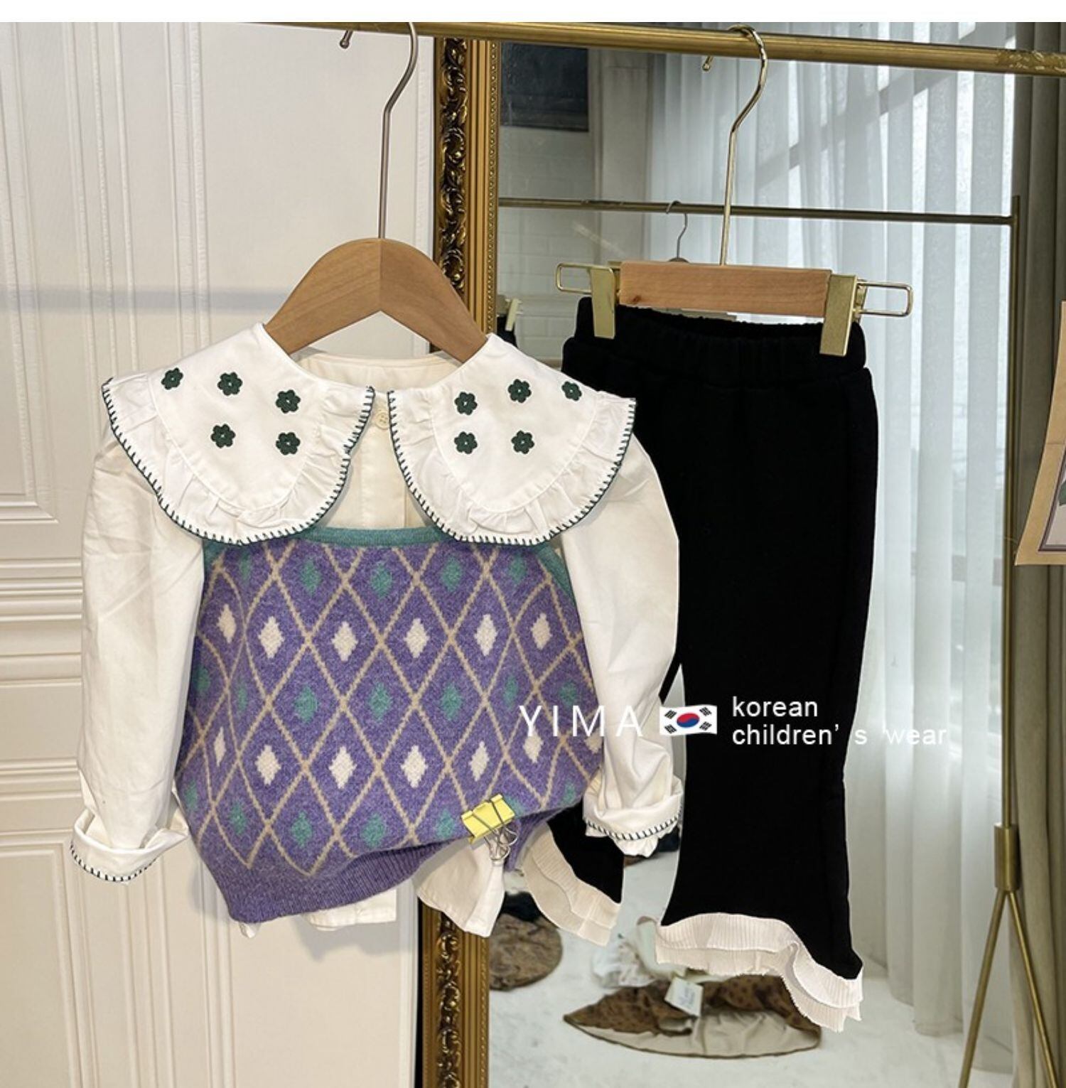 色:パープルニットベスト,黒いズボン