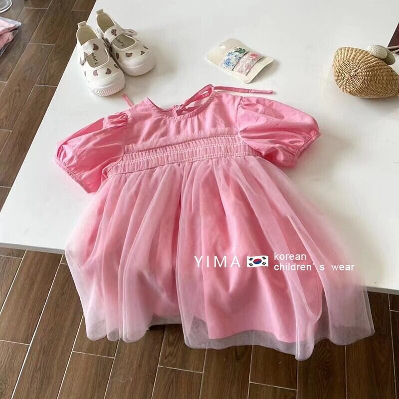 サマースタイルスカート メッシュドレス ソリッド カラー ピンク 夏物 ソリッドカラー 3/14 春夏 SS mi0979407986875 | Sagittarius By Constellation -KIDS&BABY-