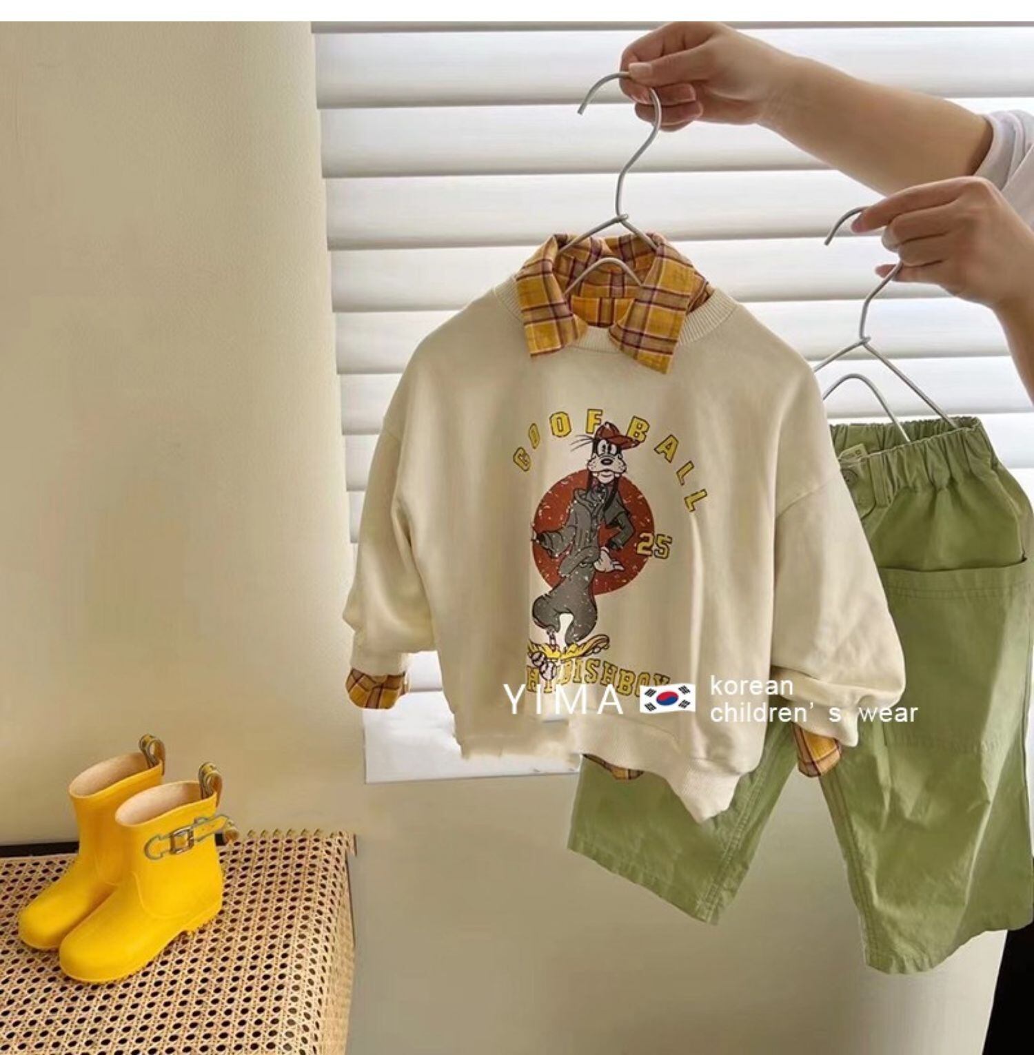色:アプリコットセーター,黄色の格子縞のシャツ,マスタードグリーンスラックス