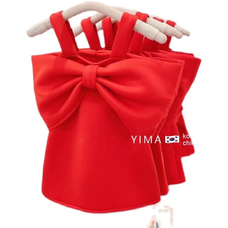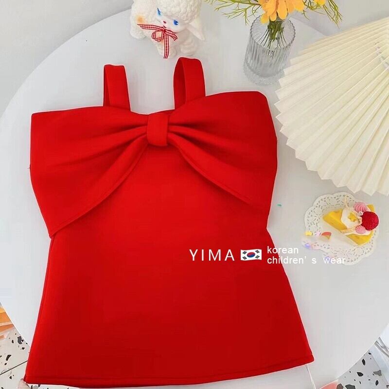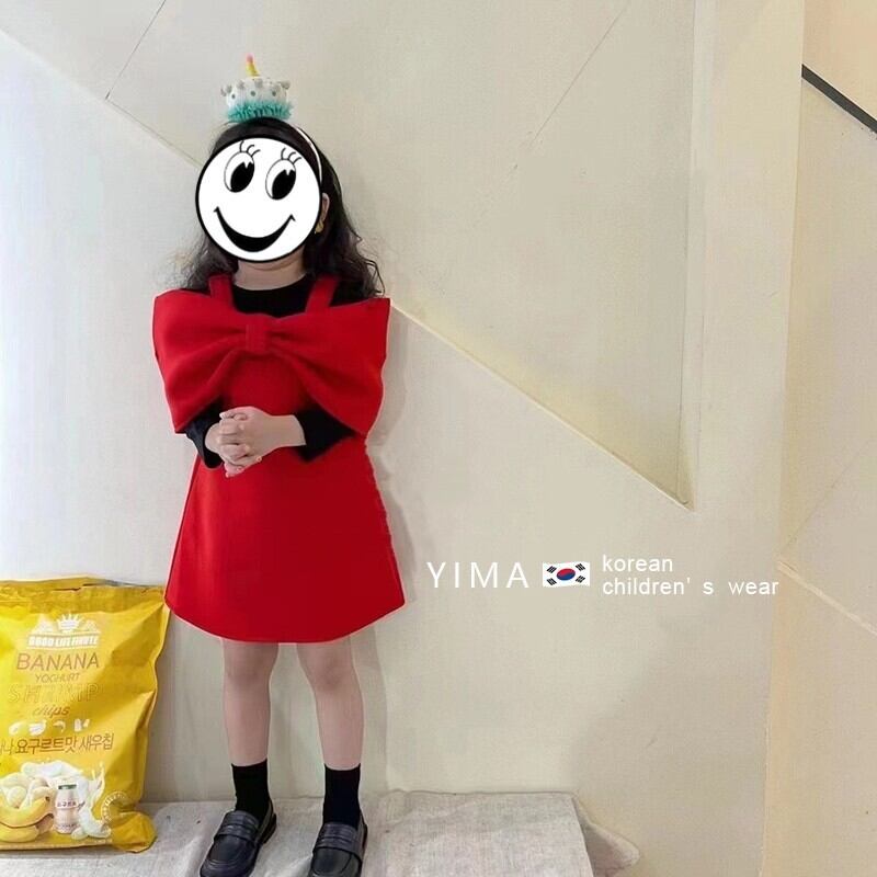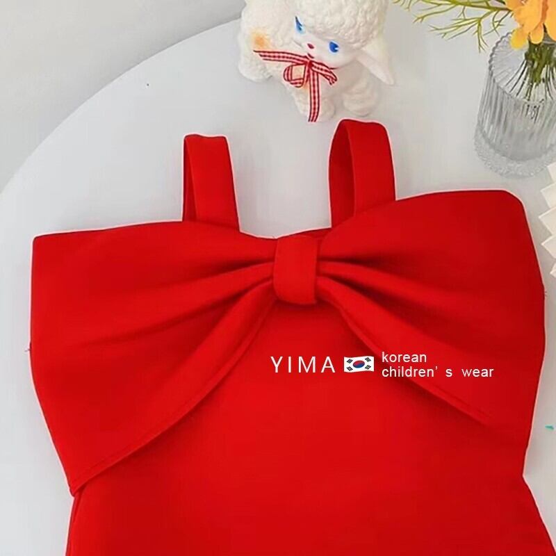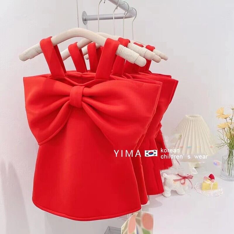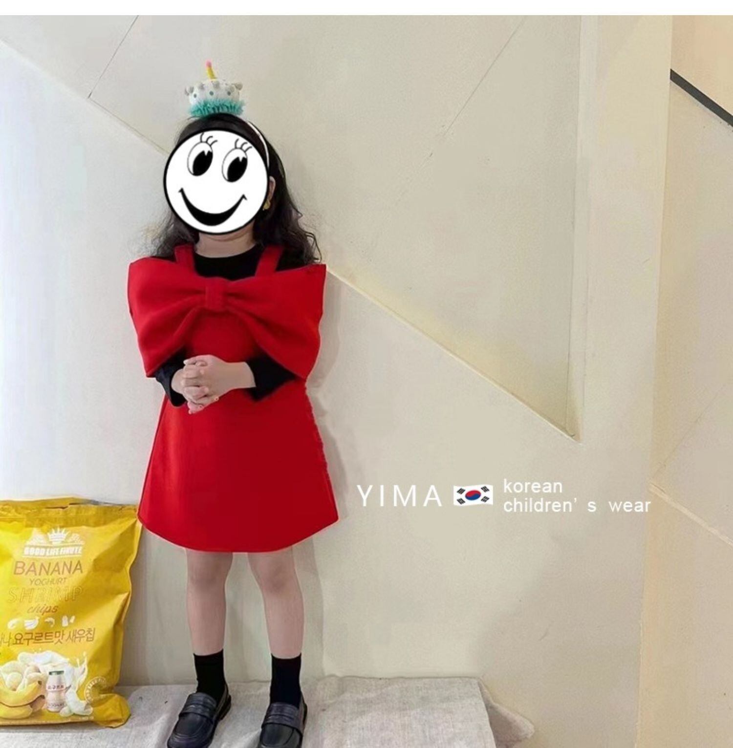 色:赤い弓のサスペンダードレス,黒底シャツ,サスペンダースカート|+黒のボトミングシャツ