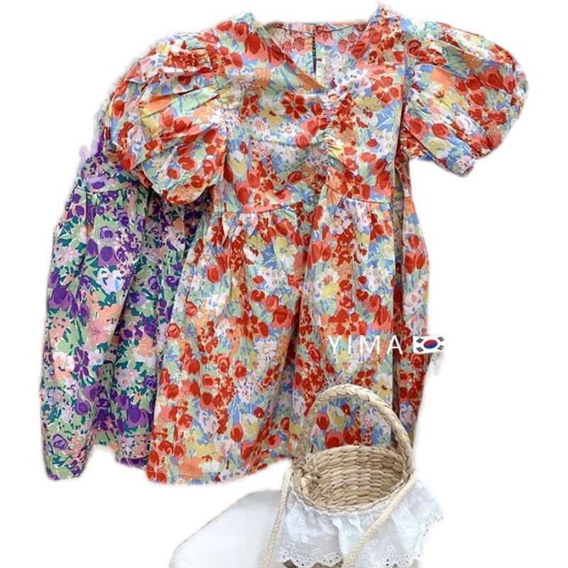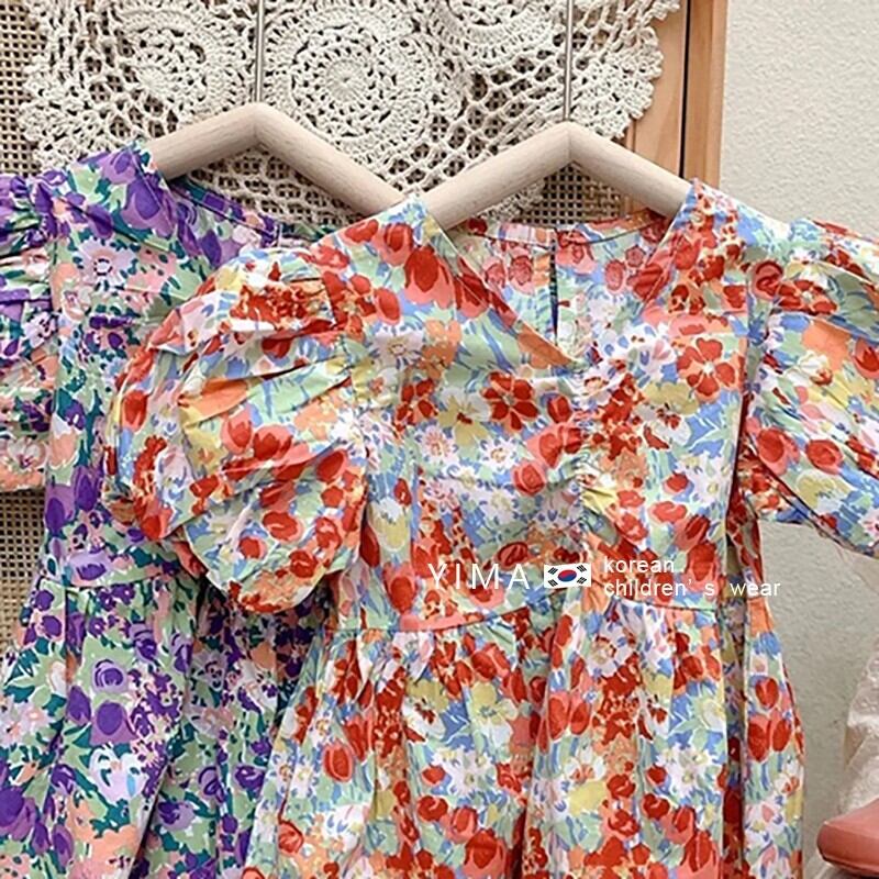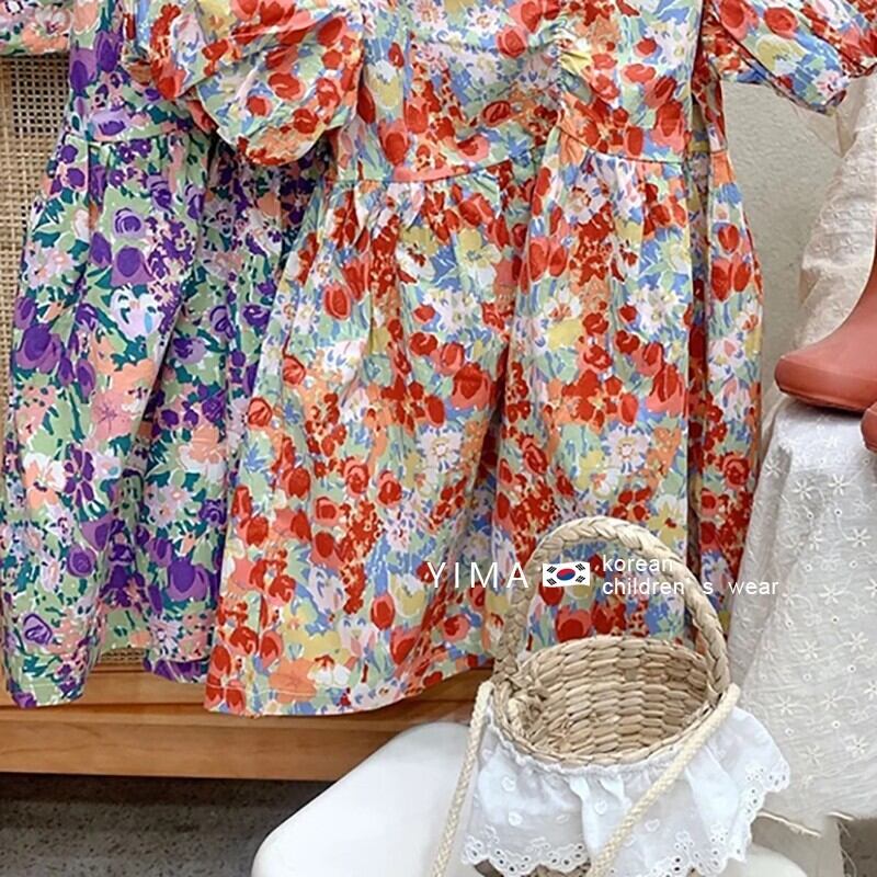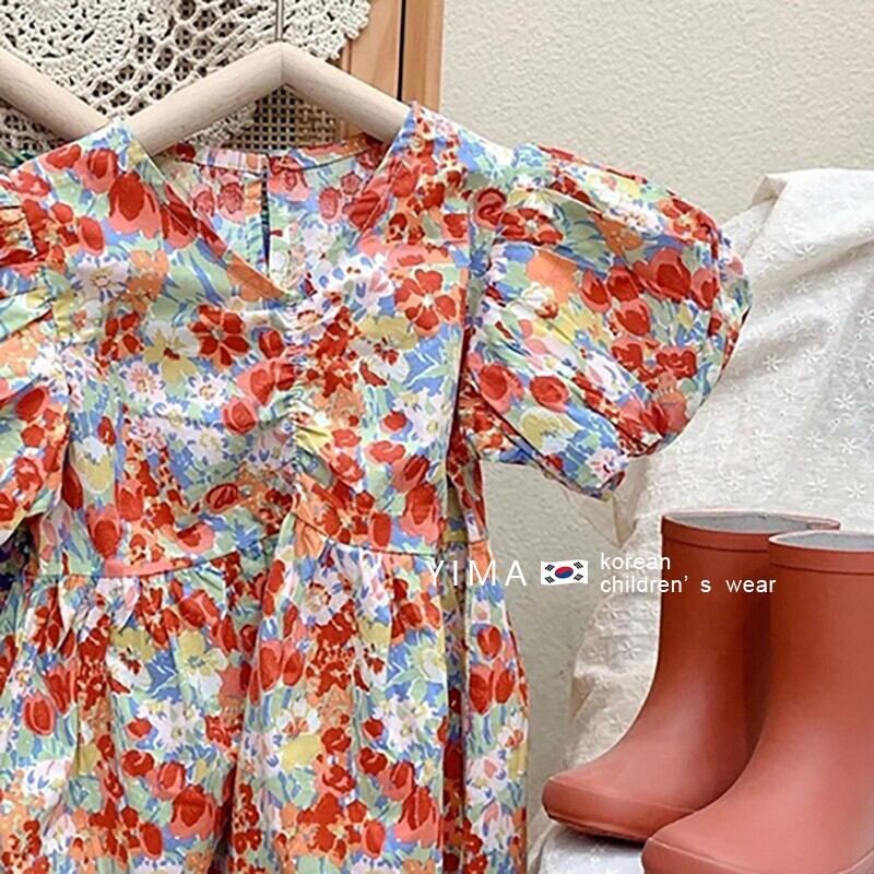 スプリングスタイルフローラルドレス サマー半袖スリーブスカート ショート コットン ハーフスリーブ 春物 夏物 花柄 3/14 春夏 SS mi0918120891842 | Sagittarius By Constellation -KIDS&BABY-