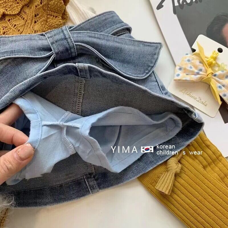 色:Ceeカラーニットベスト,ホワイトボトミングシャツ,ブルーデニムスカート