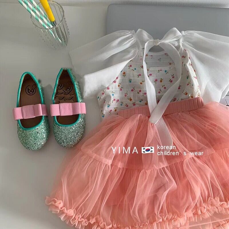 色:ホワイトトップ,ピンクのスカート