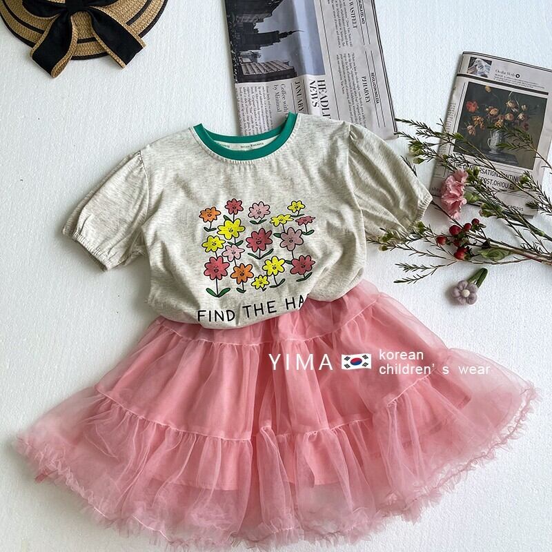 色:白いTシャツ,ライトグレーのTシャツ,ピンクのスカート