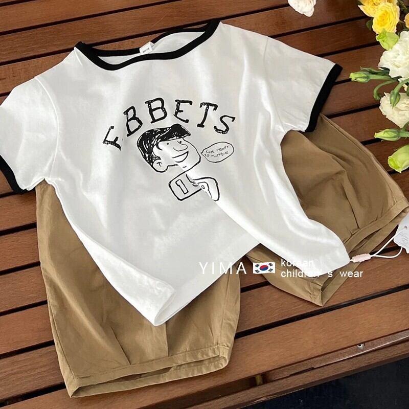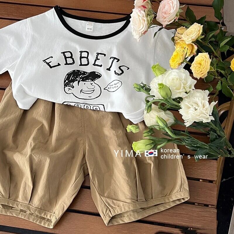 色:白い半袖,カーキ色のズボン