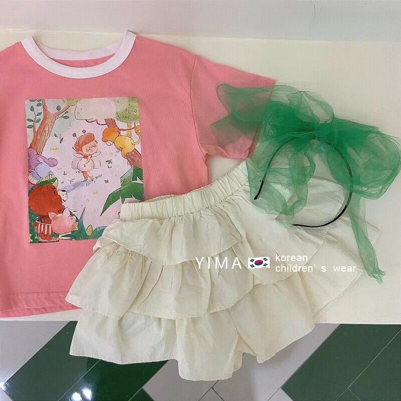 色:ピンクのTシャツ,白いTシャツ,ピンクのスカート,白いスカート