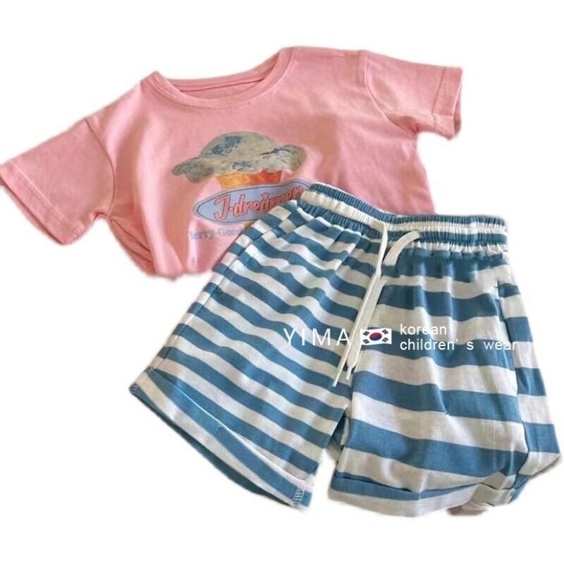 サマーカジュアルTシャツ トップス ストライプショーツ セット ピンク 夏物 ブルマー 3/14 春夏 SS mi0965587654293 | Sagittarius By Constellation -KIDS&BABY-