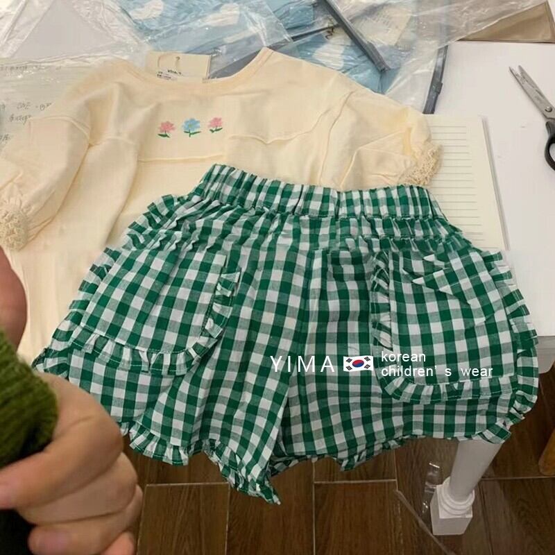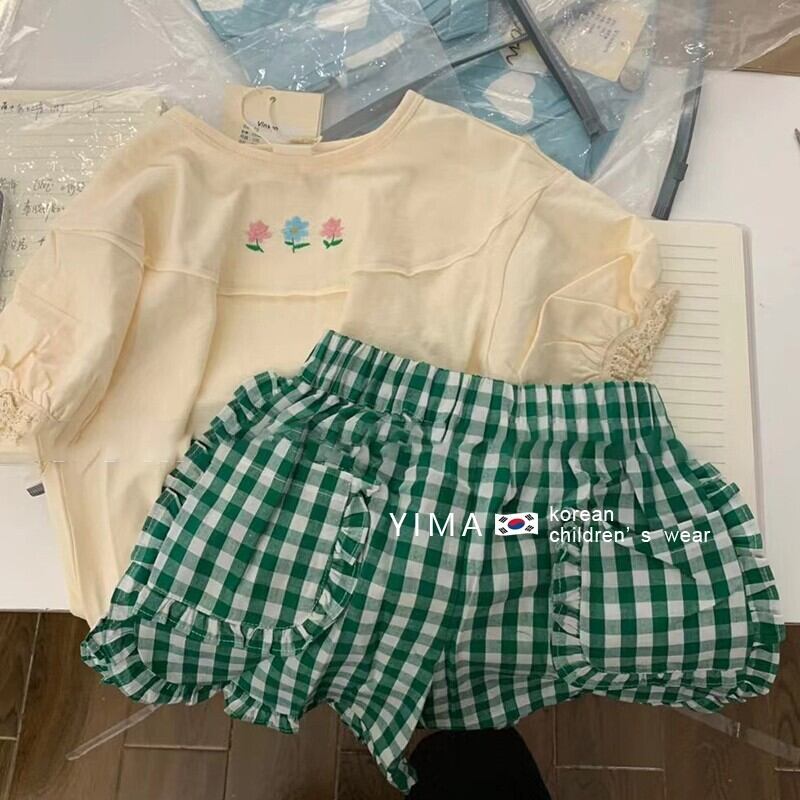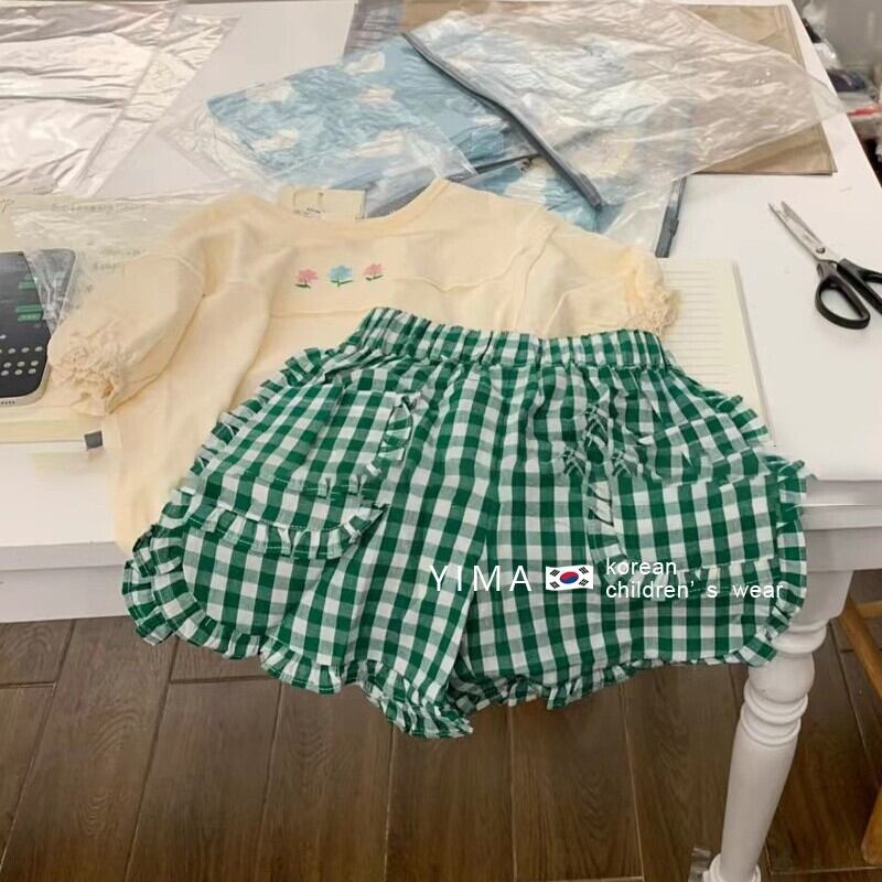 サマーソリッド カラーTシャツ トップス グリーン格子柄パンツ スタイル 夏物 ソリッドカラー 3/14 春夏 SS mi0925789266762 | Sagittarius By Constellation -KIDS&BABY-