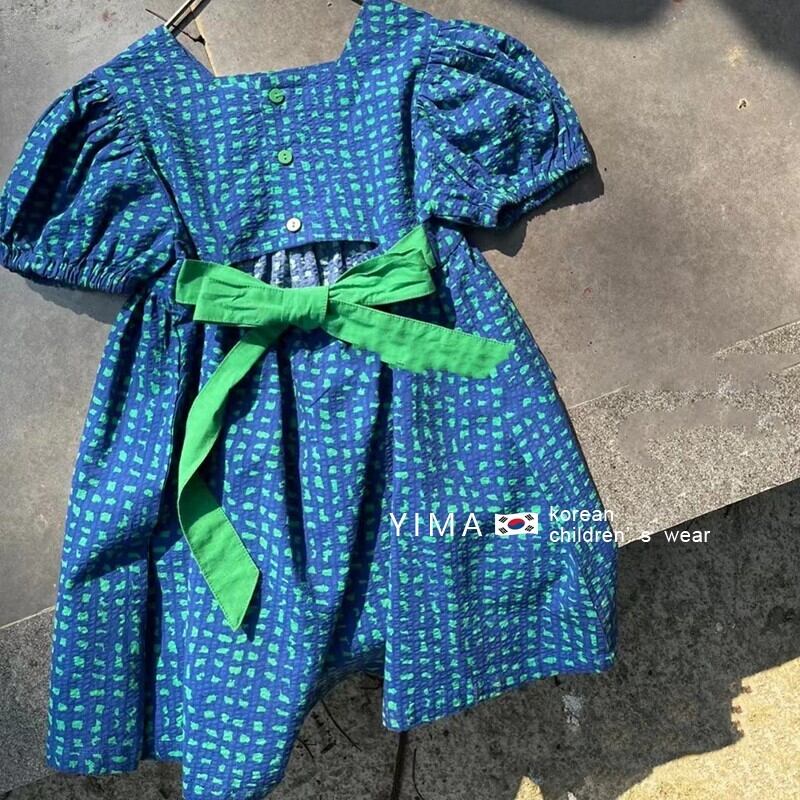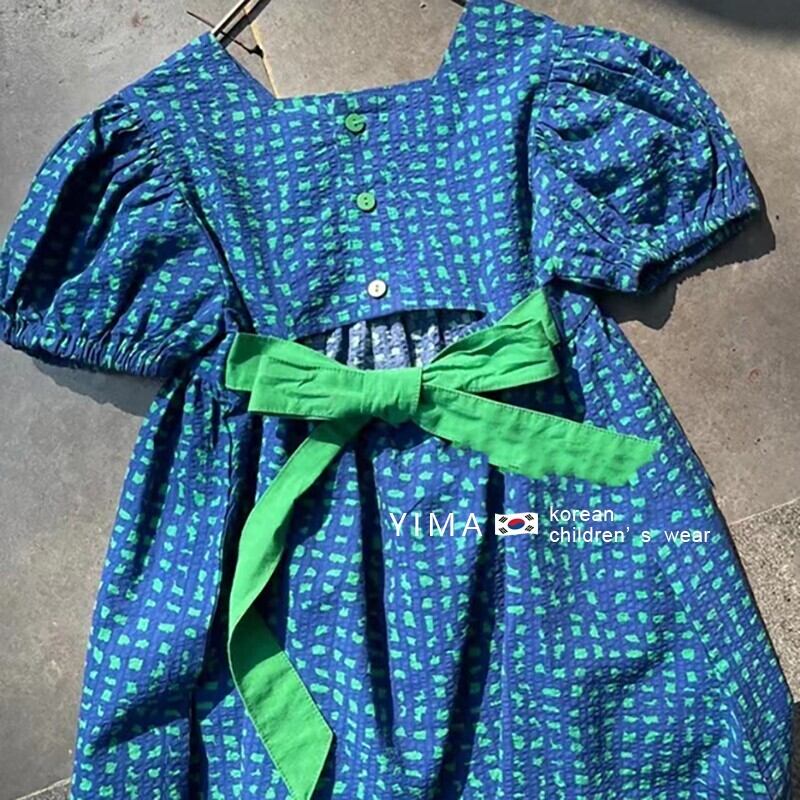 サマースタイルスリーブドレス ブルーカラースカート Aライン 夏物 スクウェア 3/14 春夏 SS mi096427409384 | Sagittarius By Constellation -KIDS&BABY-