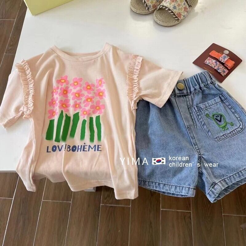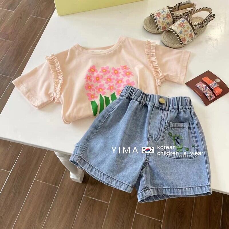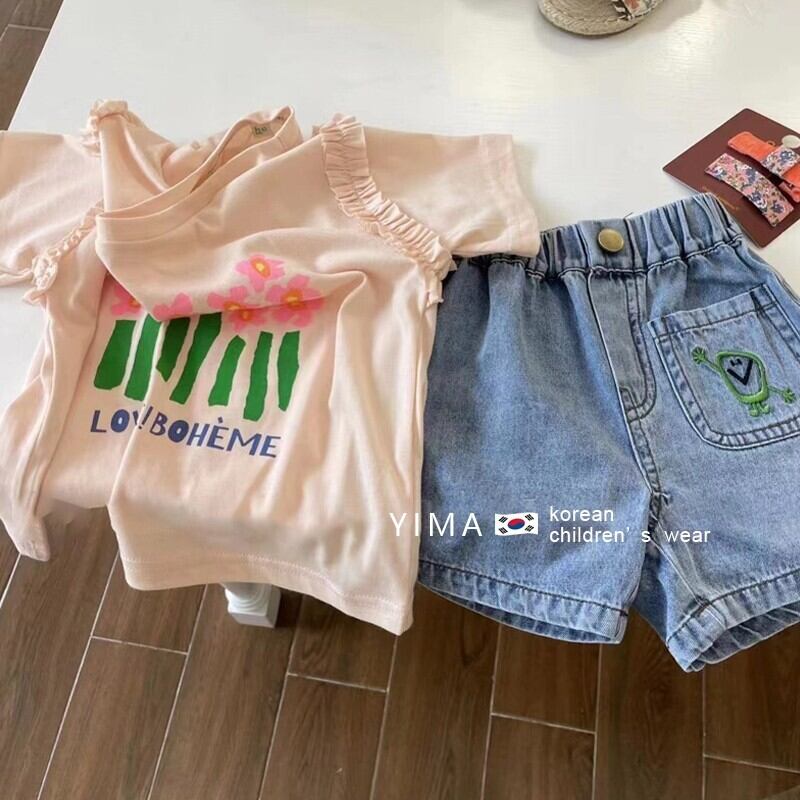 薄手サマーパンツ ジーンズ ショーツ レッド 刺繍 夏物 ブルマー 3/14 春夏 SS mi09997196654 | Sagittarius By Constellation -KIDS&BABY-