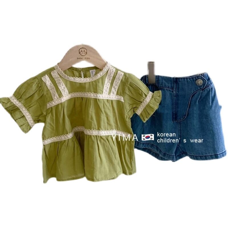 色:グリーントップ,ブルーショートパンツ