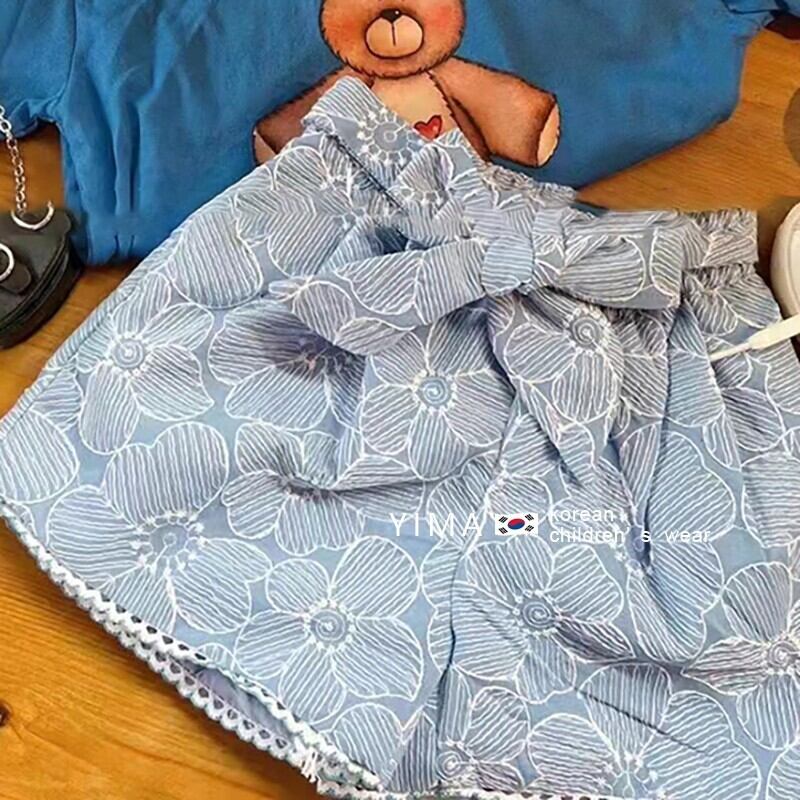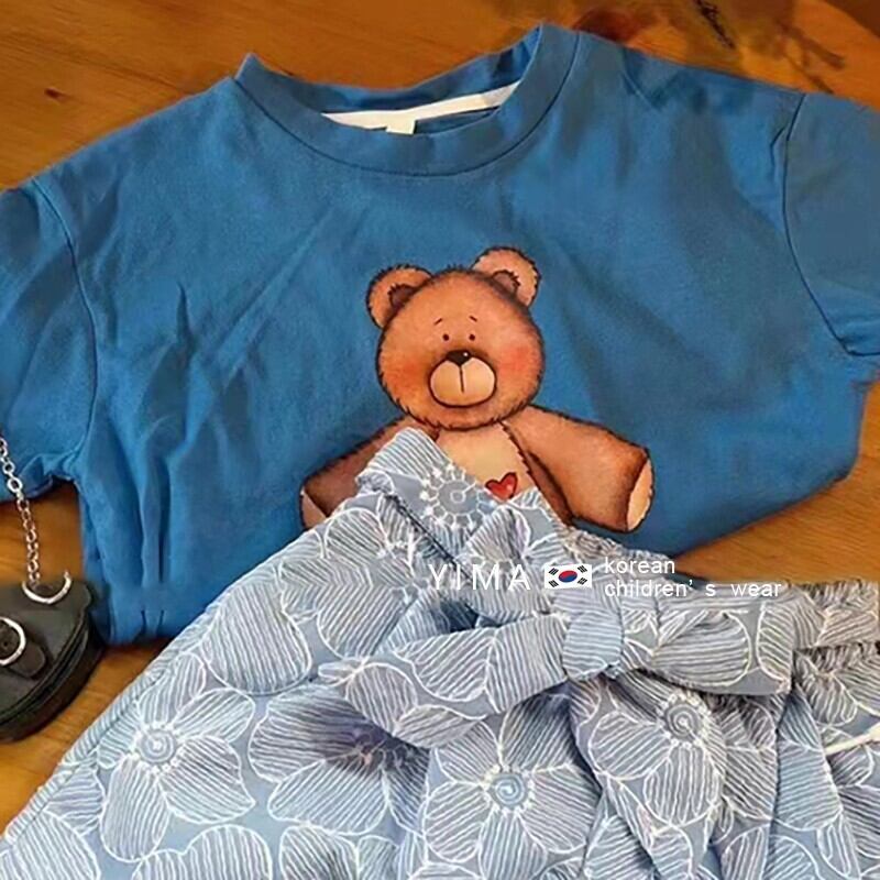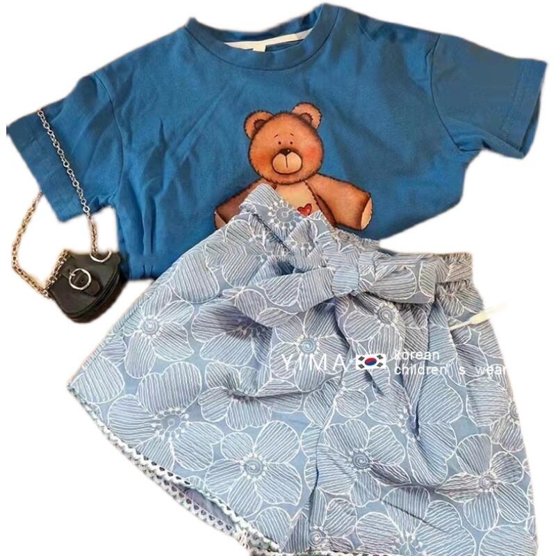 色:水色のショートパンツ,青いTシャツ