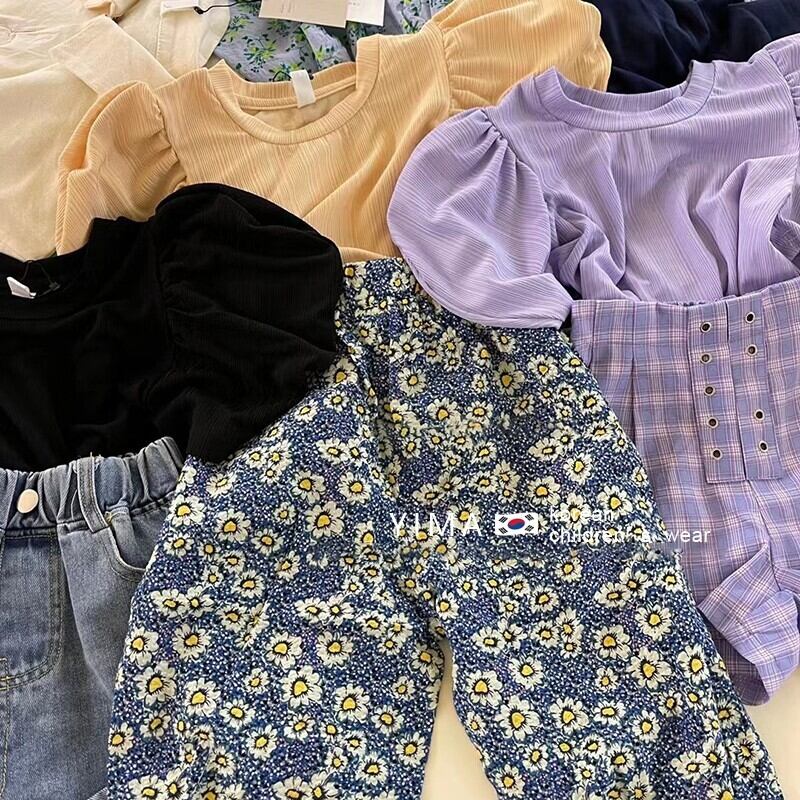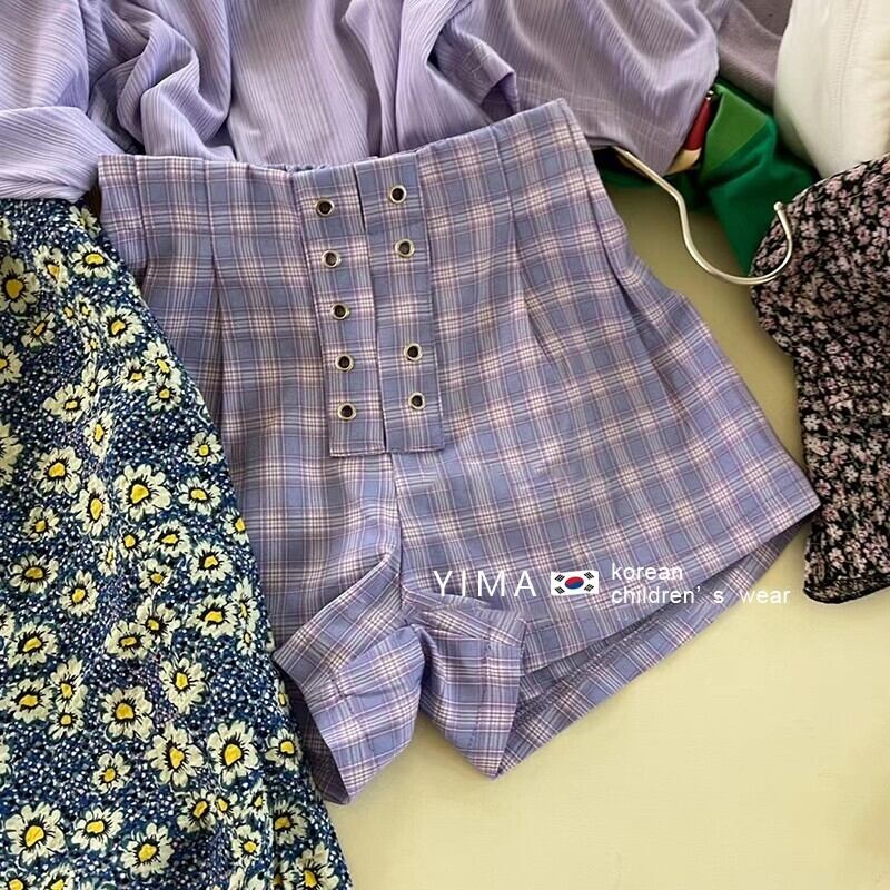 色:パープルチェックパンツ,ブルーフローラルパンツ,パープルトップ