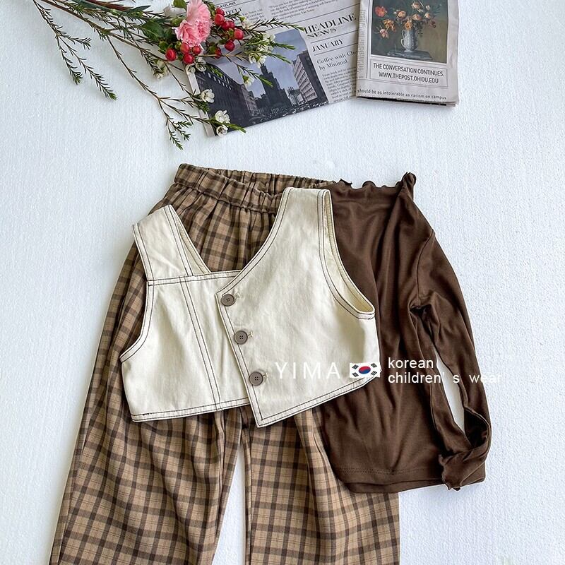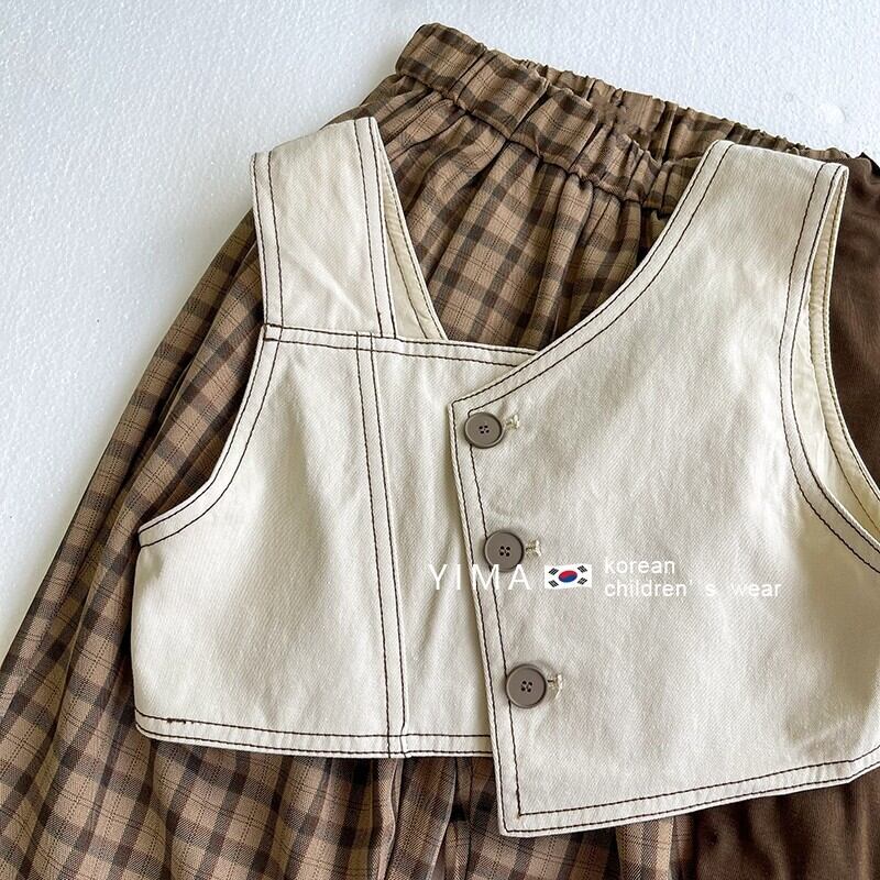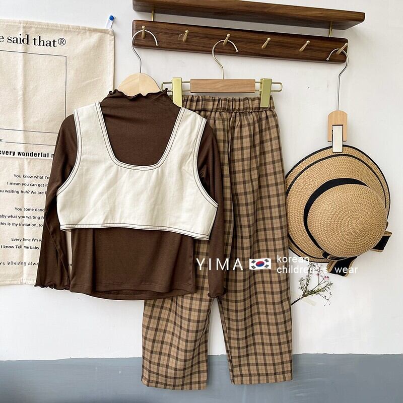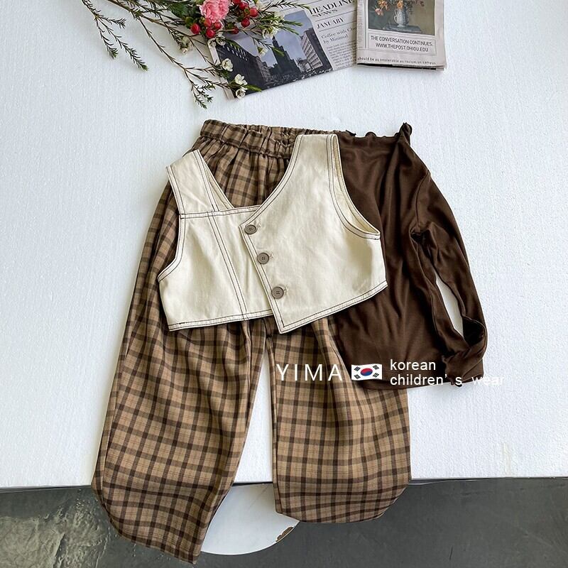 色:白いベスト,Ceeカラーボトムスシャツ,チェック柄パンツ