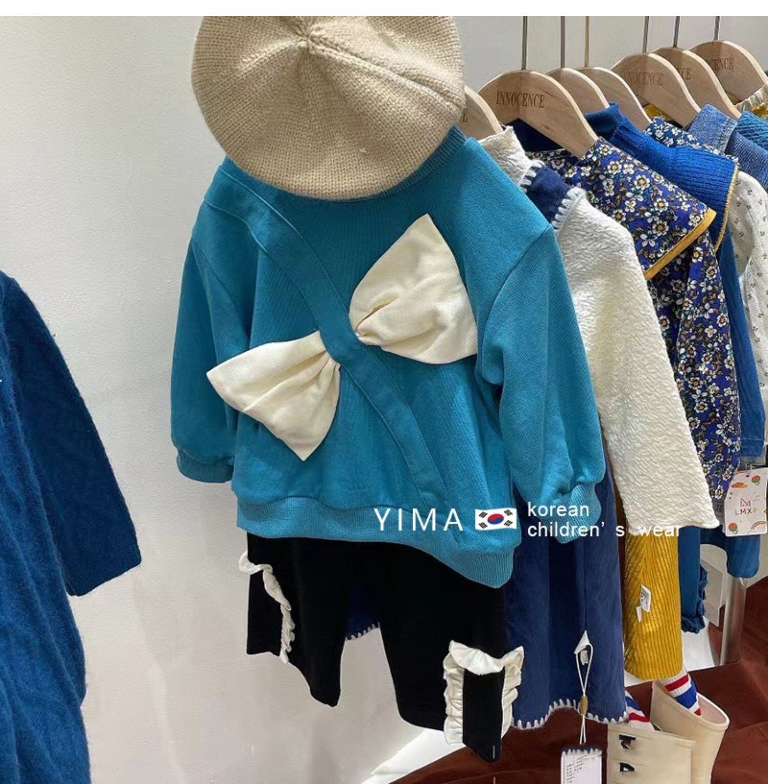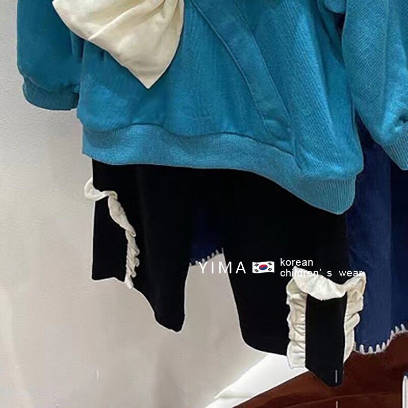 色:青い弓のスウェットシャツ,グリーンボウスウェットシャツ,黒のレースパンツ