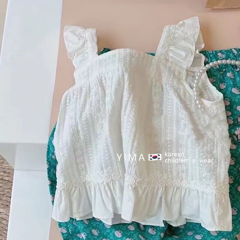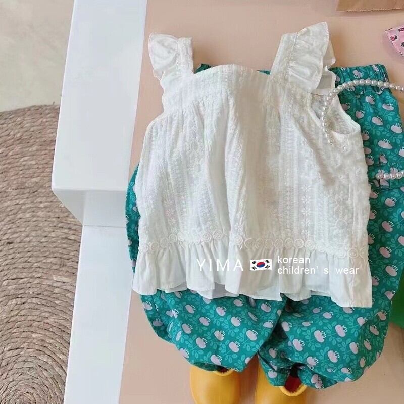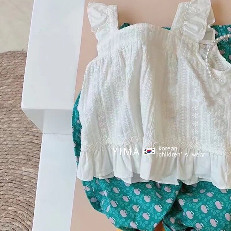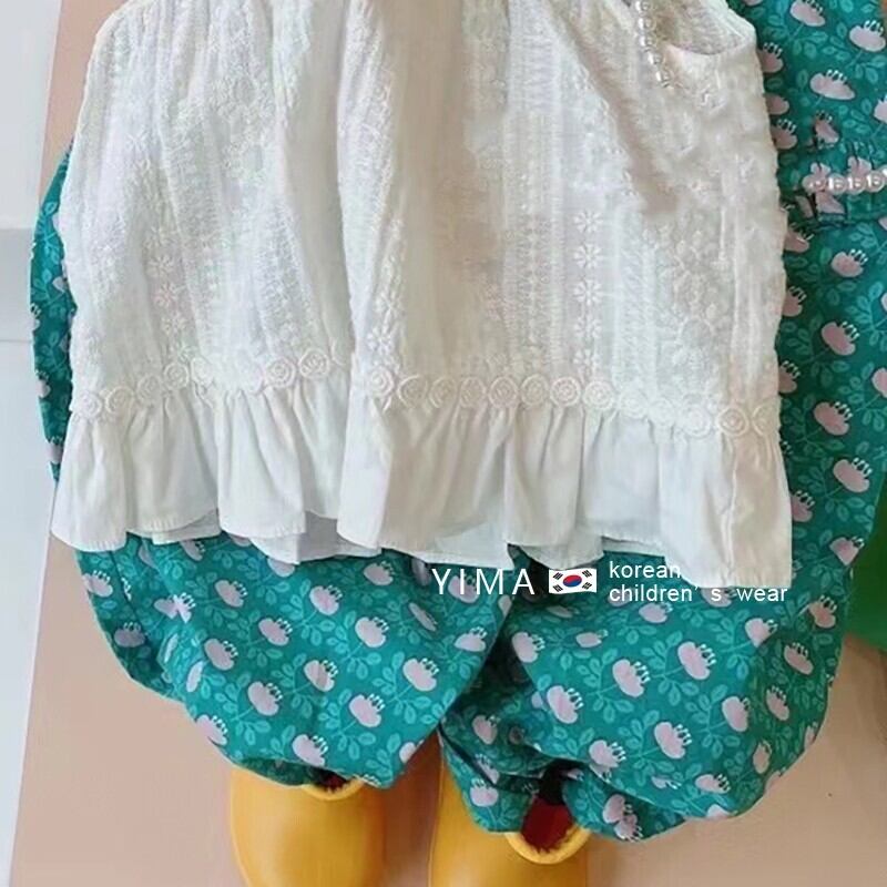 色:白いベスト,グリーンフローラルパンツ
