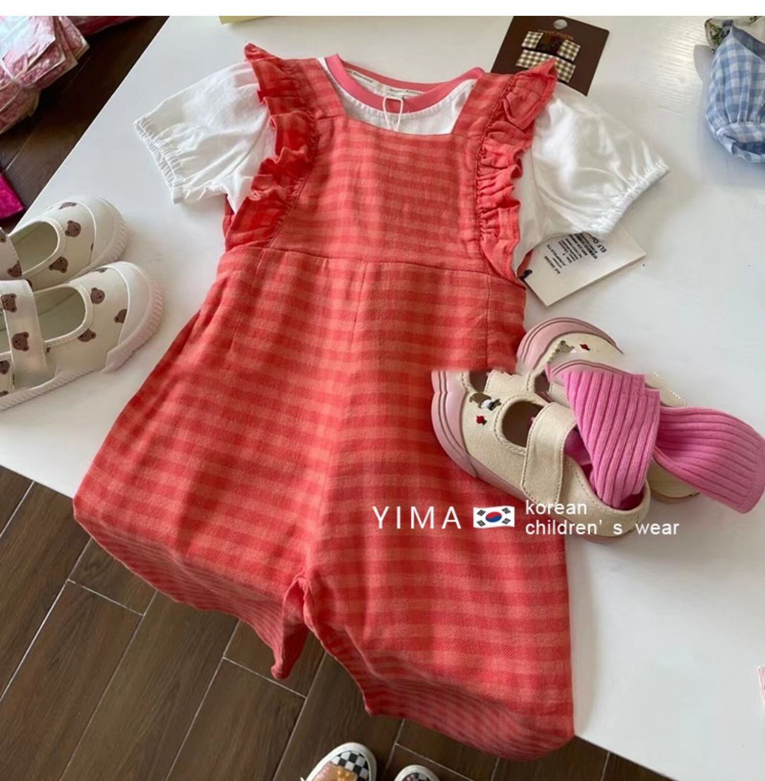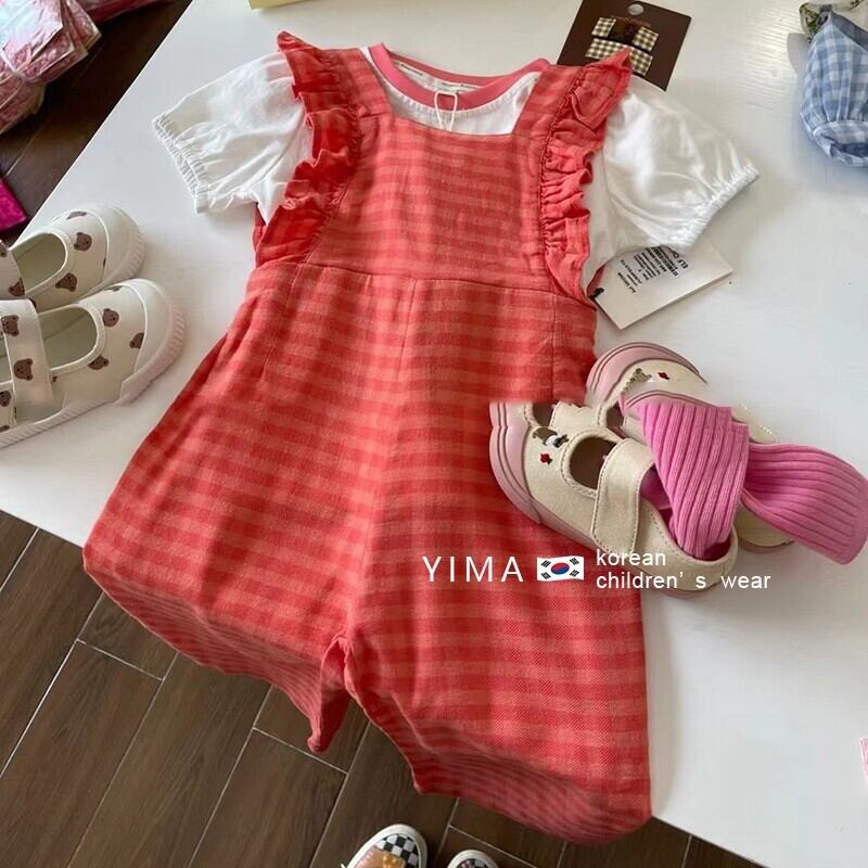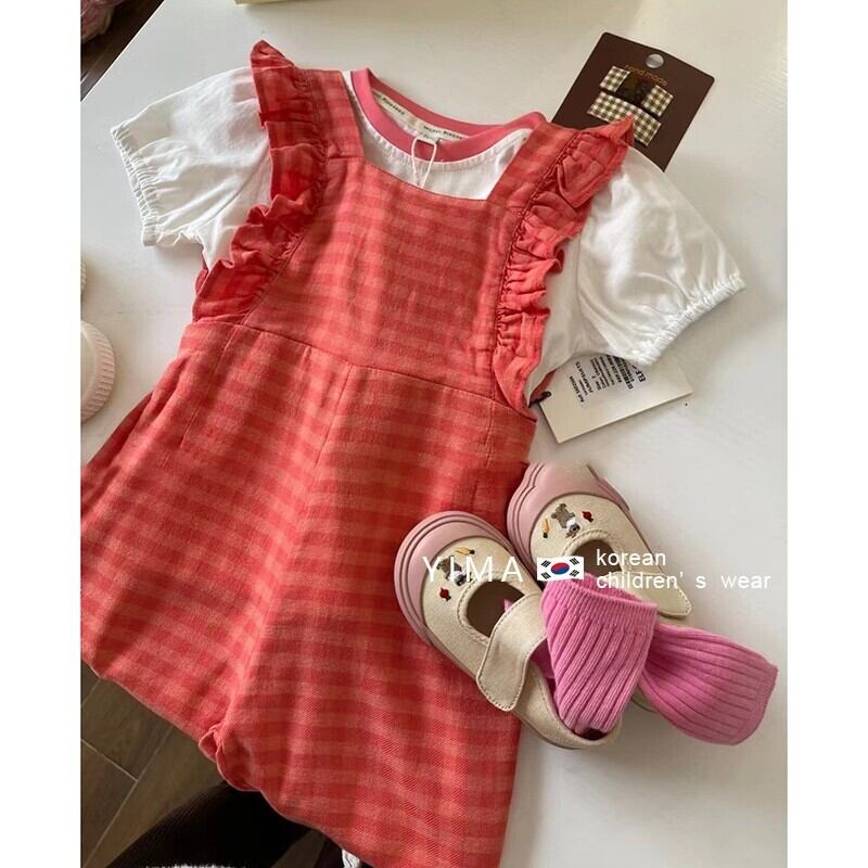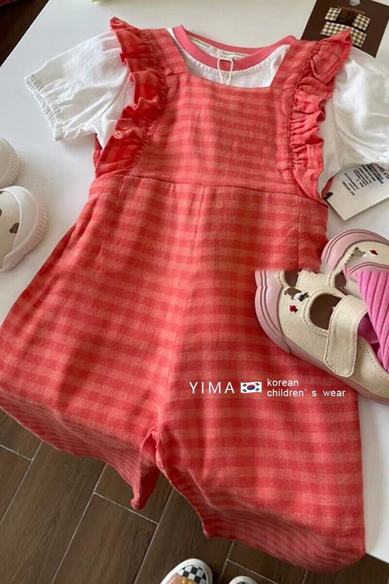色:赤いジャンプスーツ,白い半袖