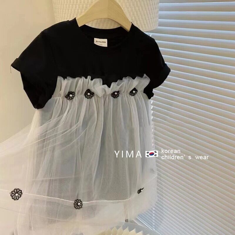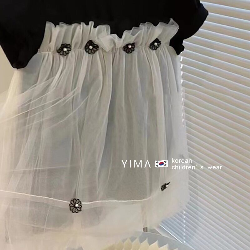 サマーブラックドレス メッシュスカート Flowerデザイン 夏物 フラワーデザイン ステッチ 3/14 春夏 SS mi0913011209948 | Sagittarius By Constellation -KIDS&BABY-
