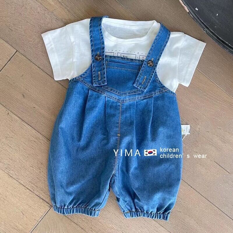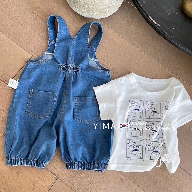 色:白い半袖,青いオーバーオール