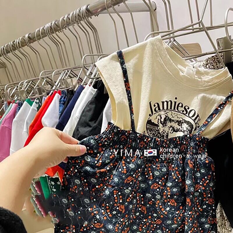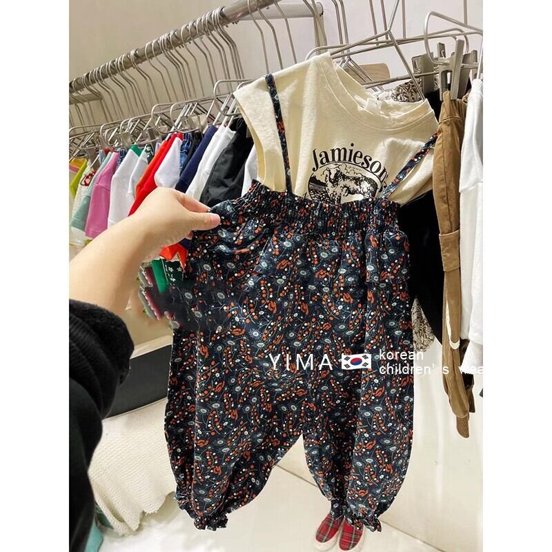 サマーノースリーブラウンドネックTシャツ フローラルオーバーオール セット 夏物 花柄 Oネック 3/14 春夏 SS mi0995970032904 | Sagittarius By Constellation -KIDS&BABY-