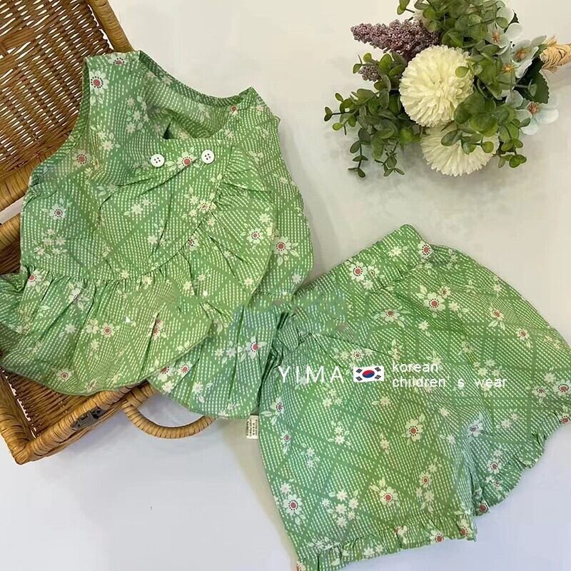 サマーフローラルグリーンノースリーブトップス ショーツ セット 夏物 ブルマー 花柄 3/14 春夏 SS mi0983288470431 | Sagittarius By Constellation -KIDS&BABY-