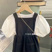色:ホワイトトップ,ブラックストラップドレス