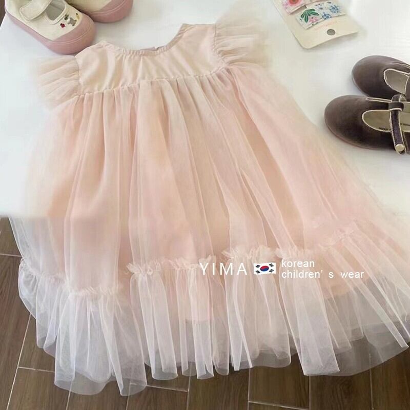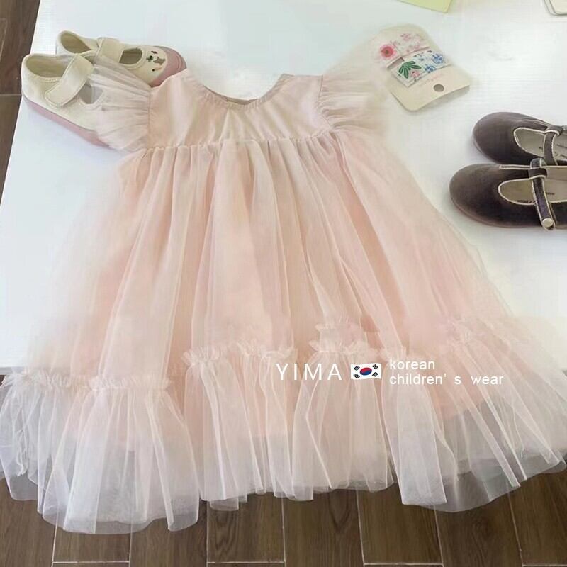 サマースタイルメッシュドレス スカート ピンク ふわふわ 夏物 3/14 春夏 SS mi0997682626085 | Sagittarius By Constellation -KIDS&BABY-