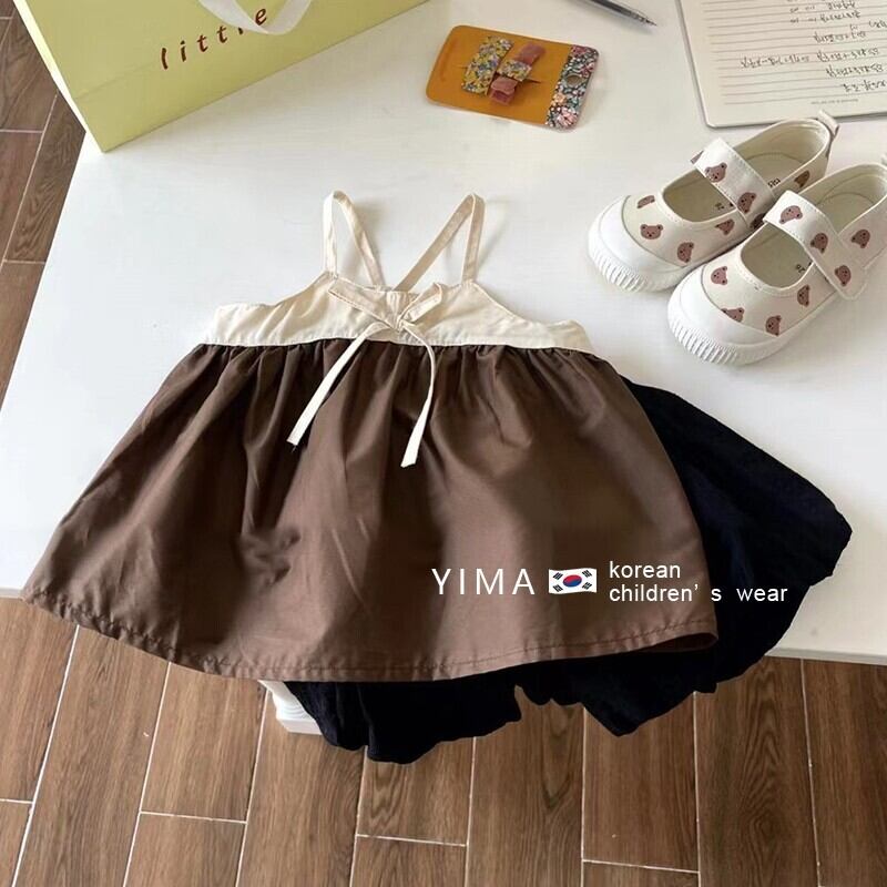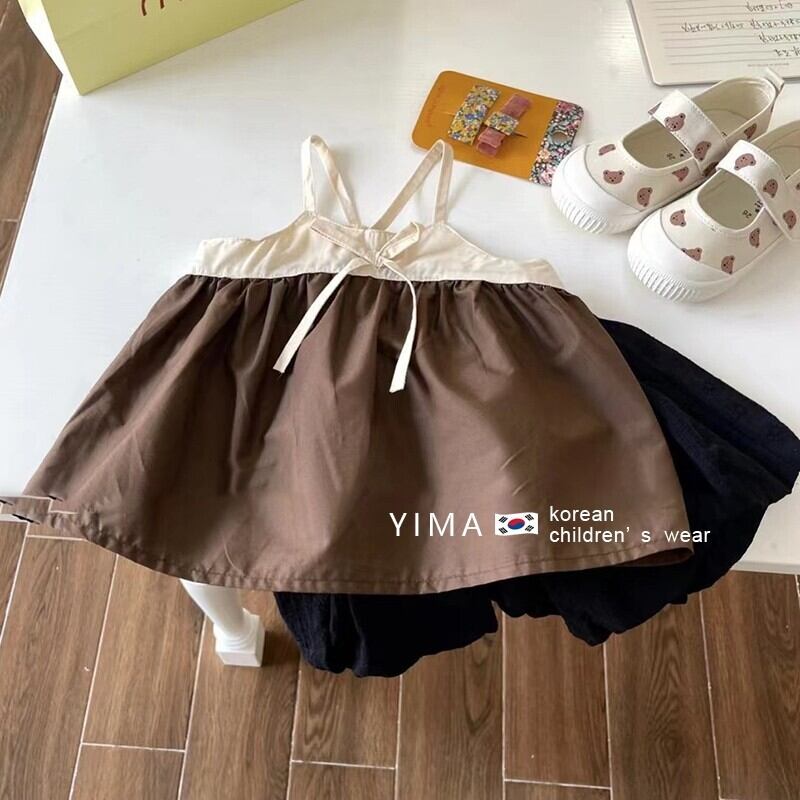色:アプリコットキャミソール,黒のショートパンツ