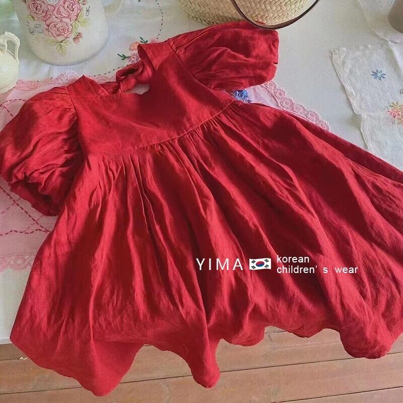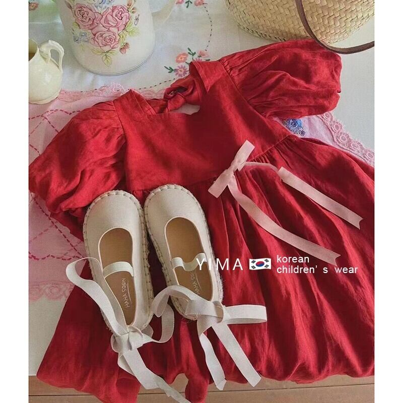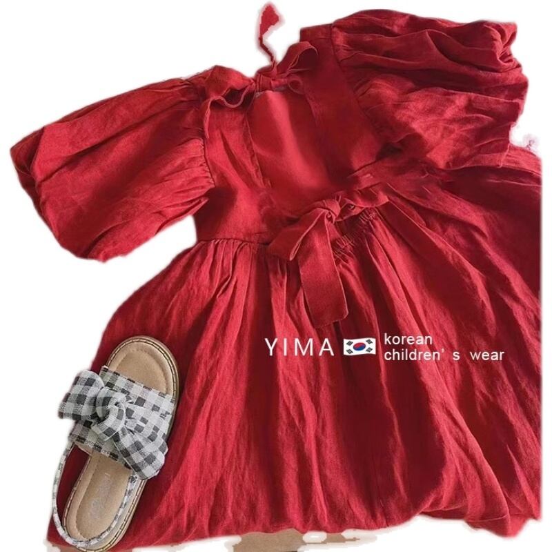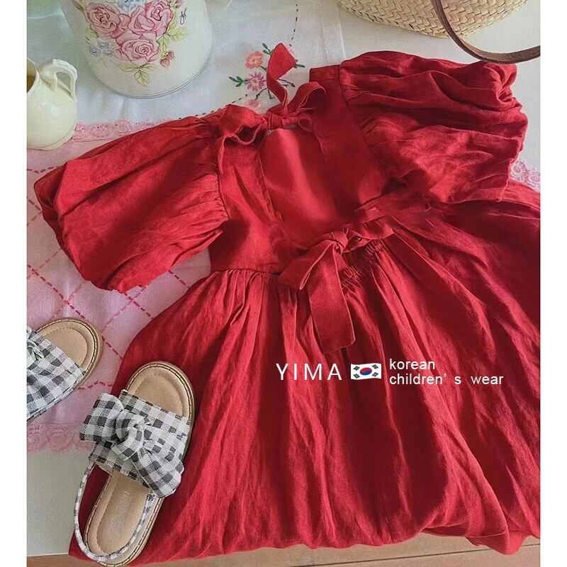 サマースリーブドレス レッドスカート Aライン レース 夏物 レースアップ 3/14 春夏 SS mi0948649376940 | Sagittarius By Constellation -KIDS&BABY-